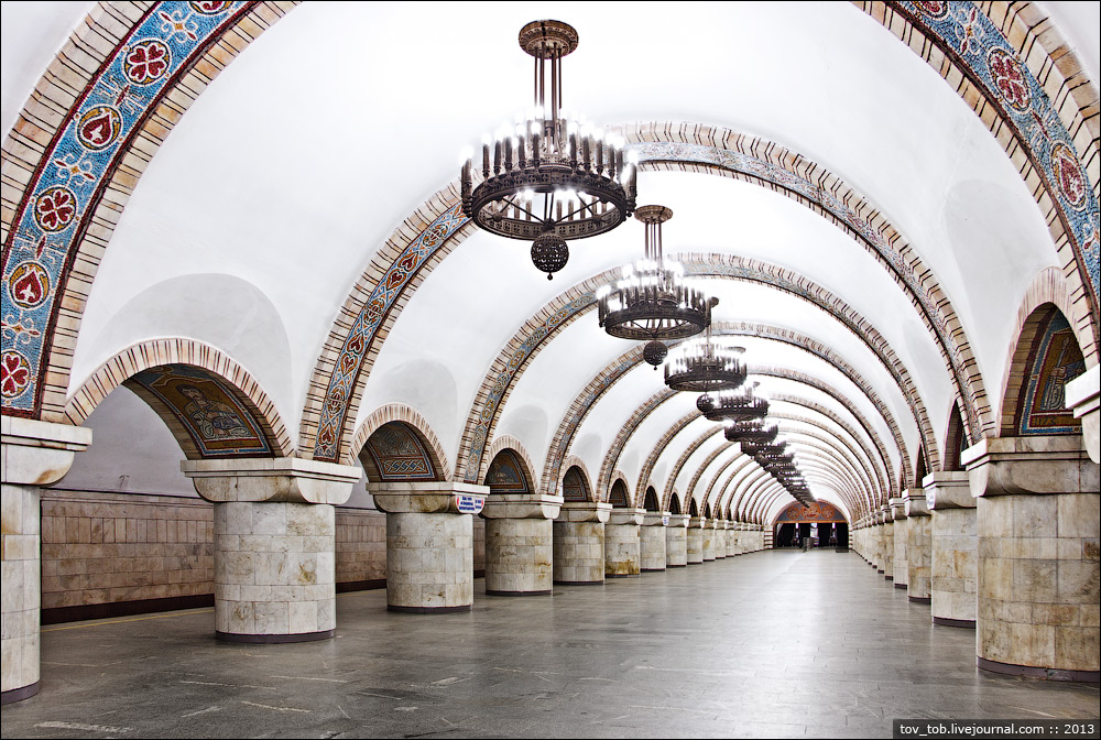 The metro stations in Kiev are extraordinary. Kiev has the deepest metro station in Europe. The station name is Arsenalna.
