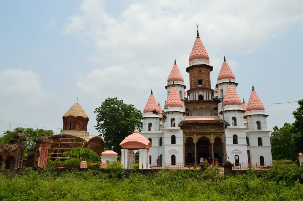 The Hanseswari sanctuary has an unmistakable engineering unique in relation to the typical example present around there, comprising 13 minars. The inward structure of the building takes after human life systems. It was begun by Raja Nrisingha Deb Roy Mahasay and later finished by his widow spouse Rani Sankari in 1814. The design of the sanctuaries is the portrayal of "Tantrik Satchakrabhed".