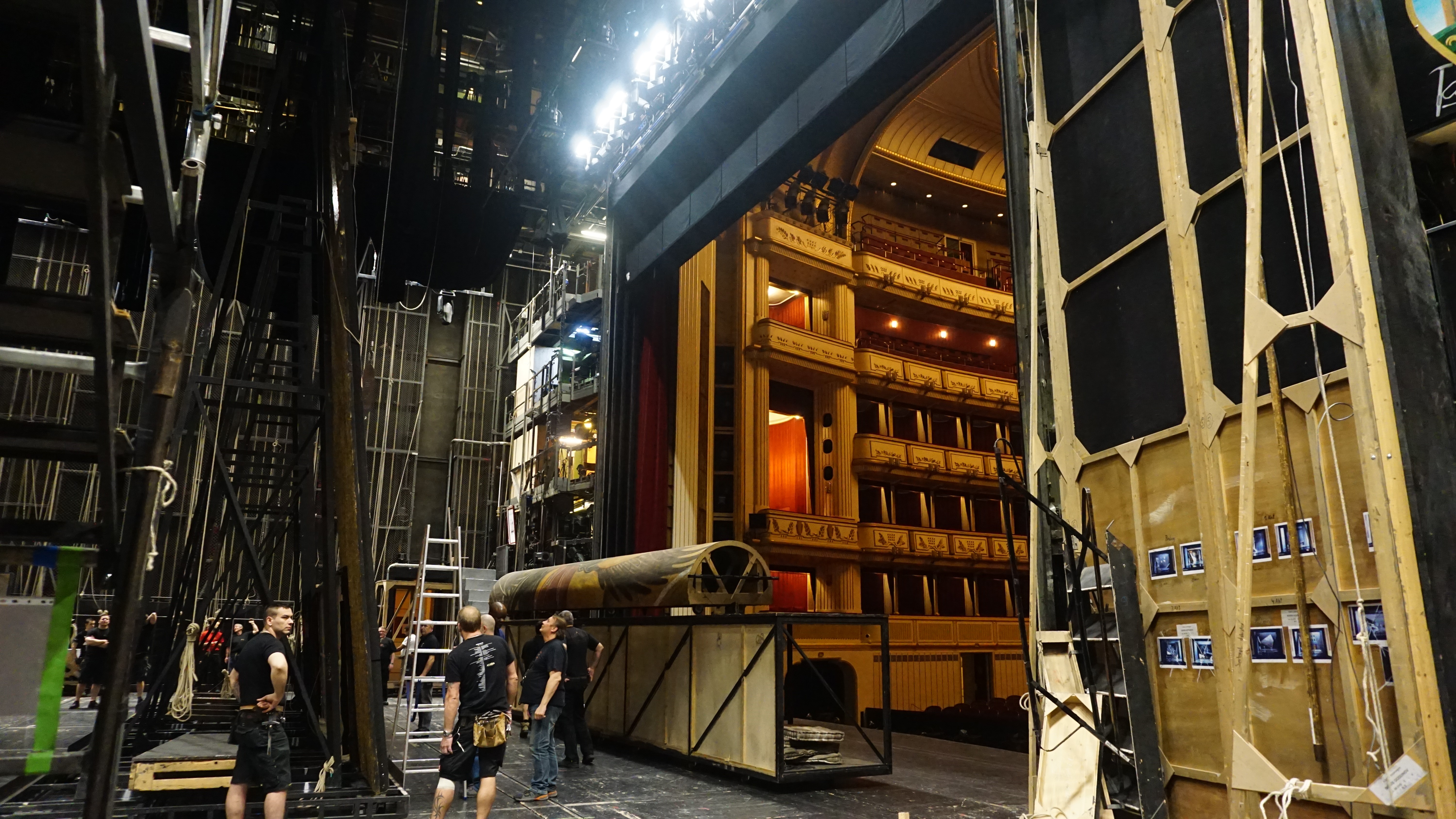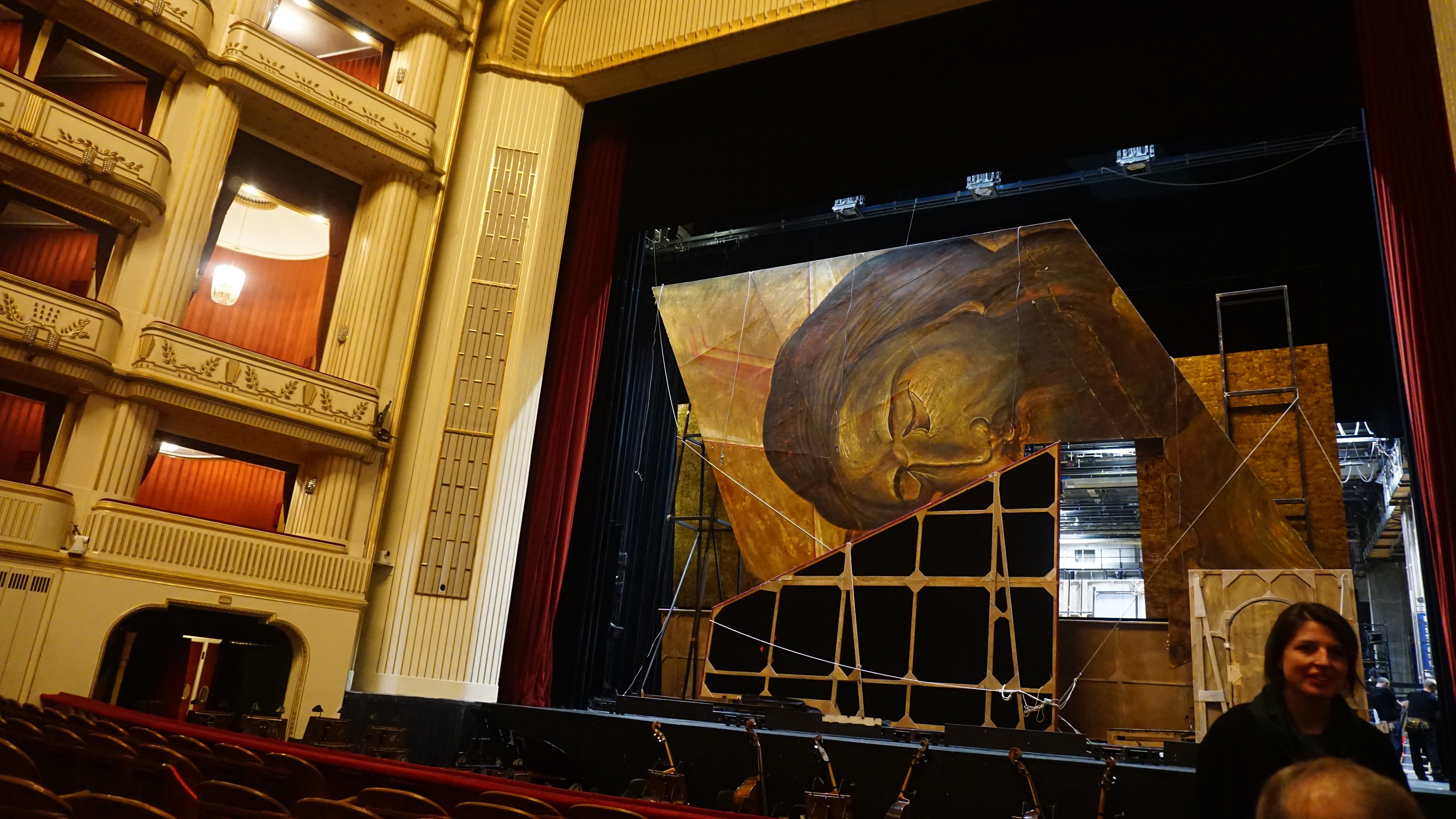 It happened that when we went in for a visit, the backstage staff met preparing for a night performance. Great giant towering eyes.