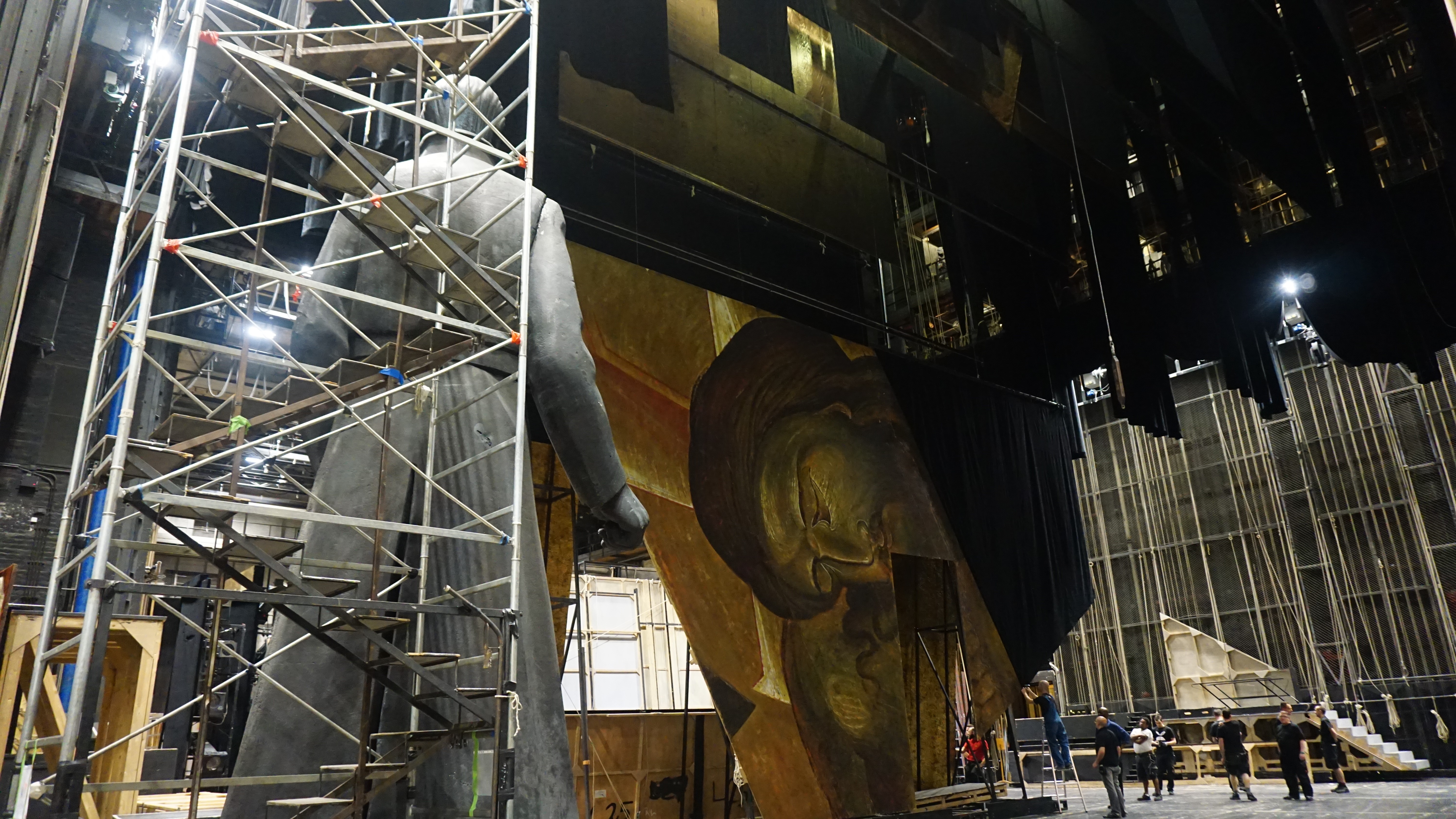 正巧我们进去参观的时候,遇到后台工作人员正在为晚上的演出做准备。大大的巨人耸立眼前。