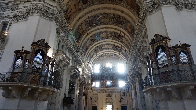 Salzburg Cathedral is located in the heart of the Old Town, is an Italian-style church. The cathedral's original construction dates back to 774 AD. The cathedral dome was designed and built in 1660. Salzburg's cathedral, with its majestic façade and huge dome, epitomizes the majestic features of the early Baroque side of the Alps.