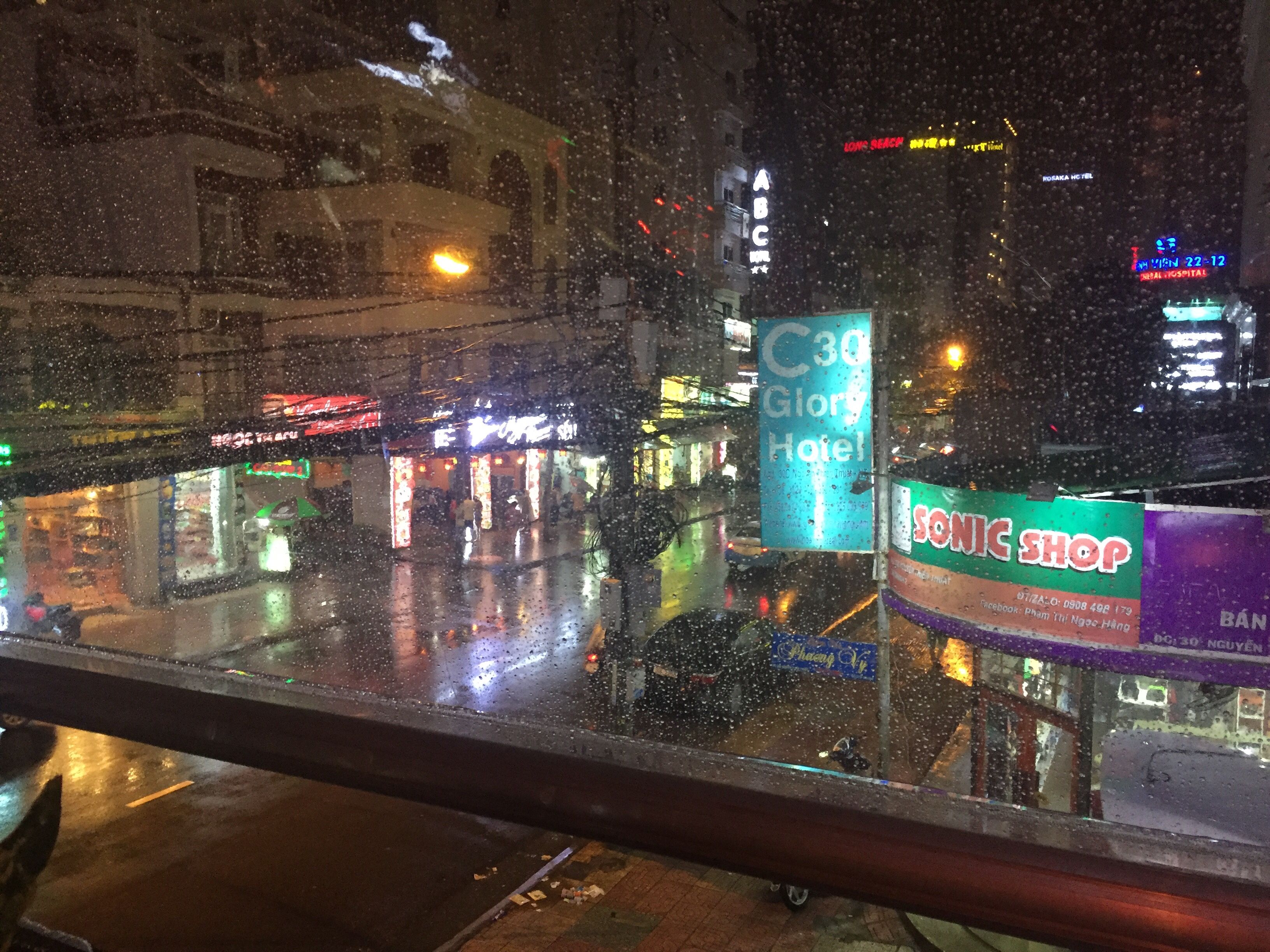 ▲ 랜턴스 레스토랑(Lanterns restaurant)과 앉아서 비오는 밖을 찍은 사진입니다.