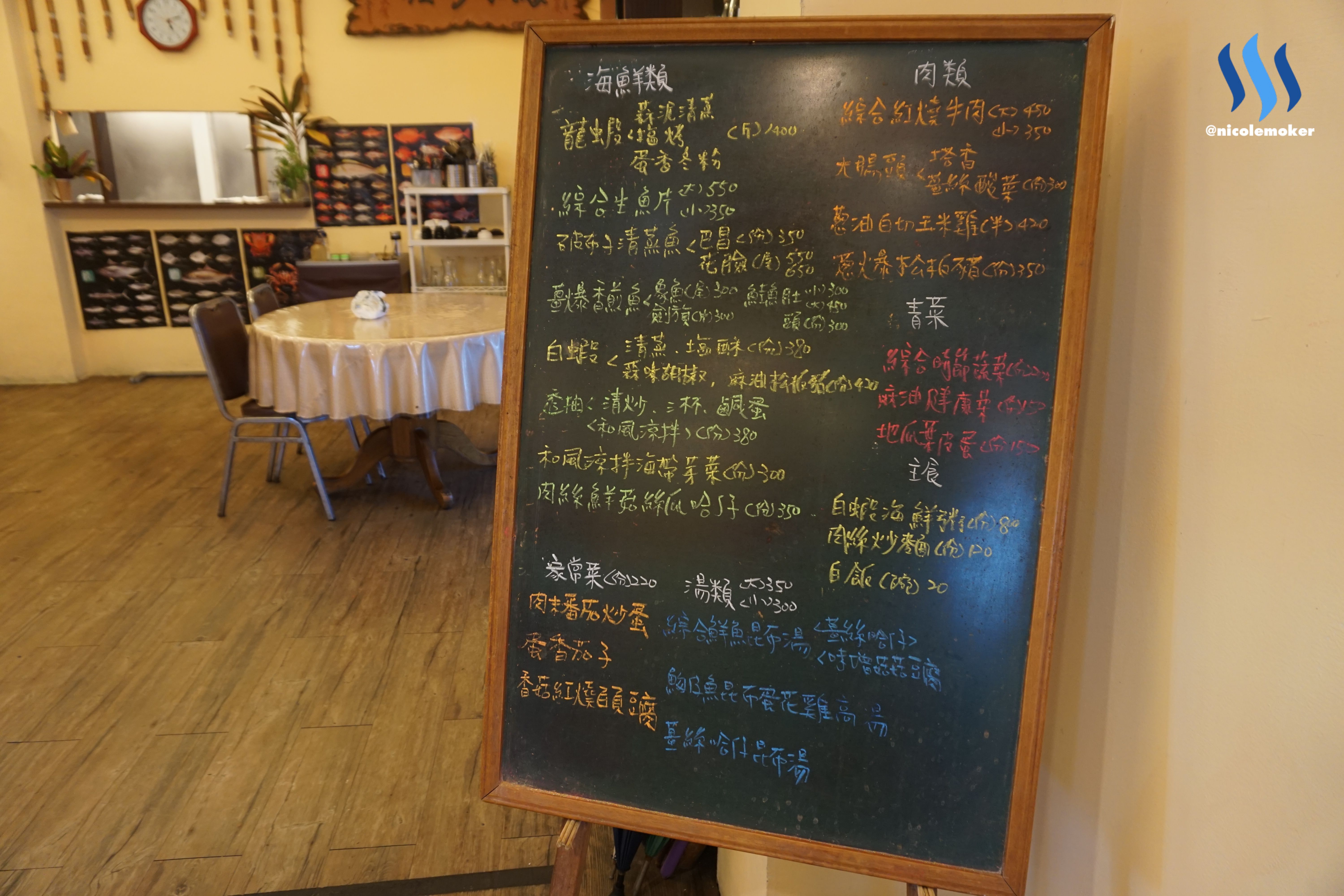There is lots of food choices, not only limited to seafood. For English users, please tell them what types of seafood you prefer, and they will make the decision for you. (The foods are delicious and worthy.)