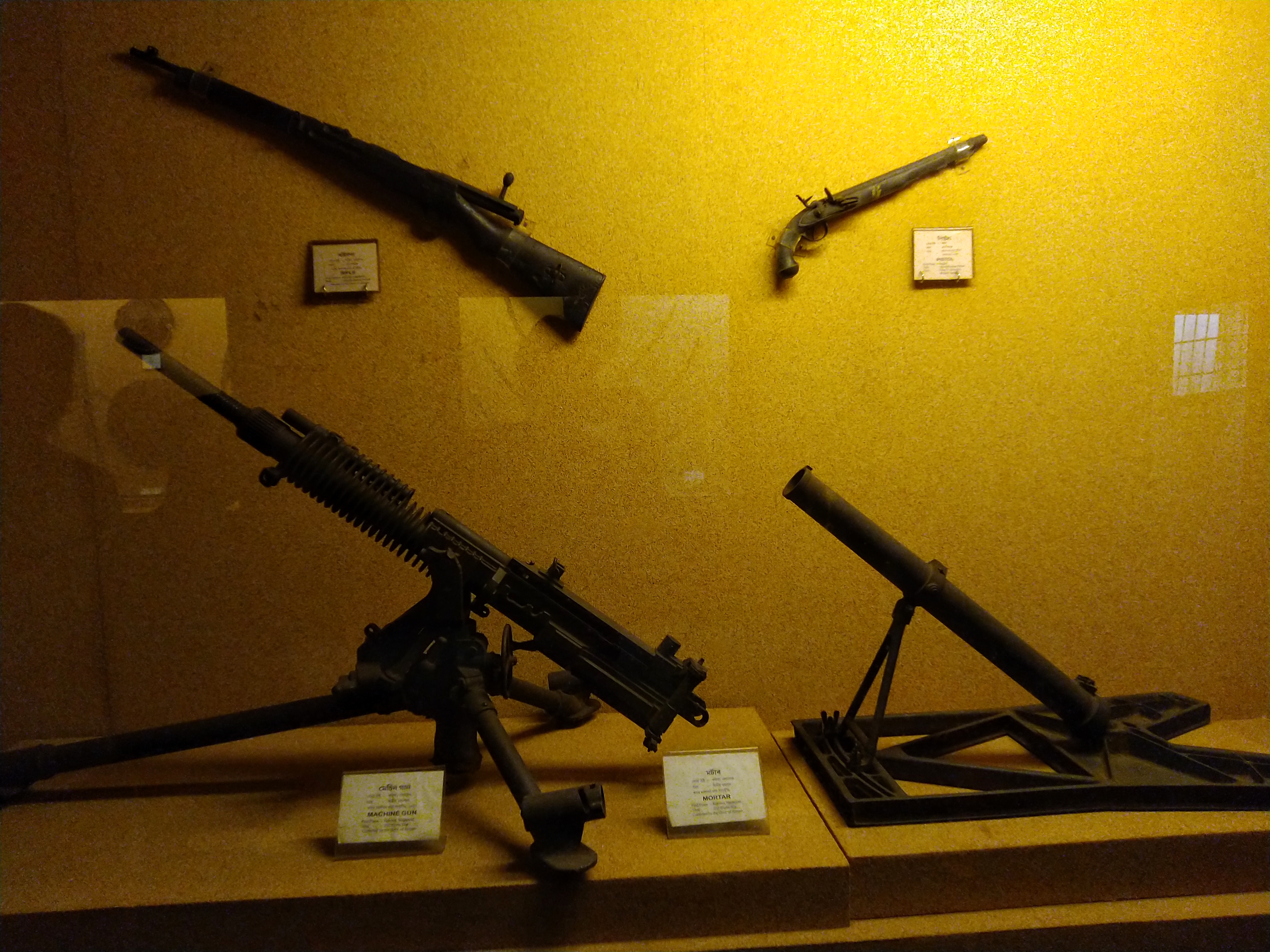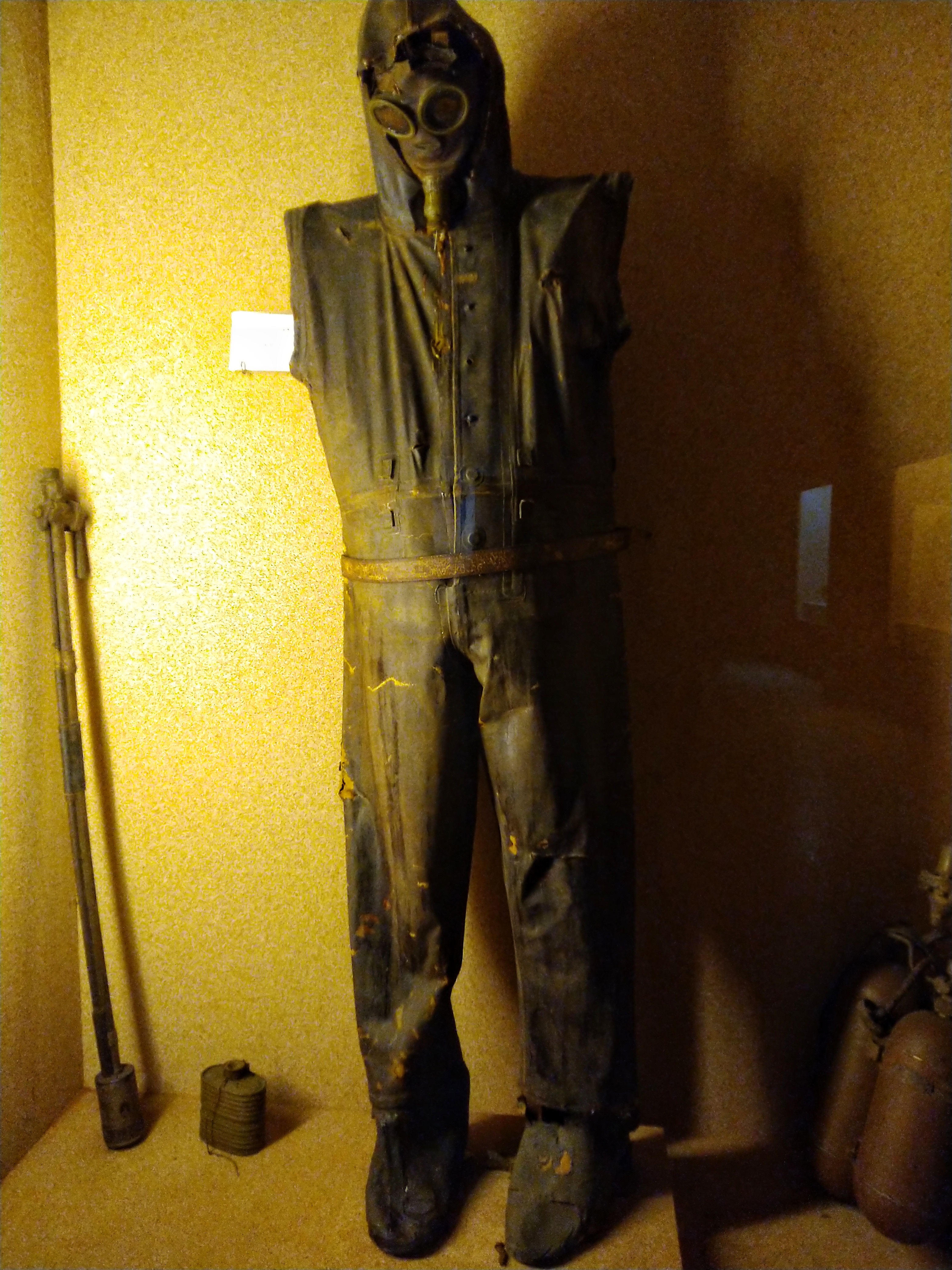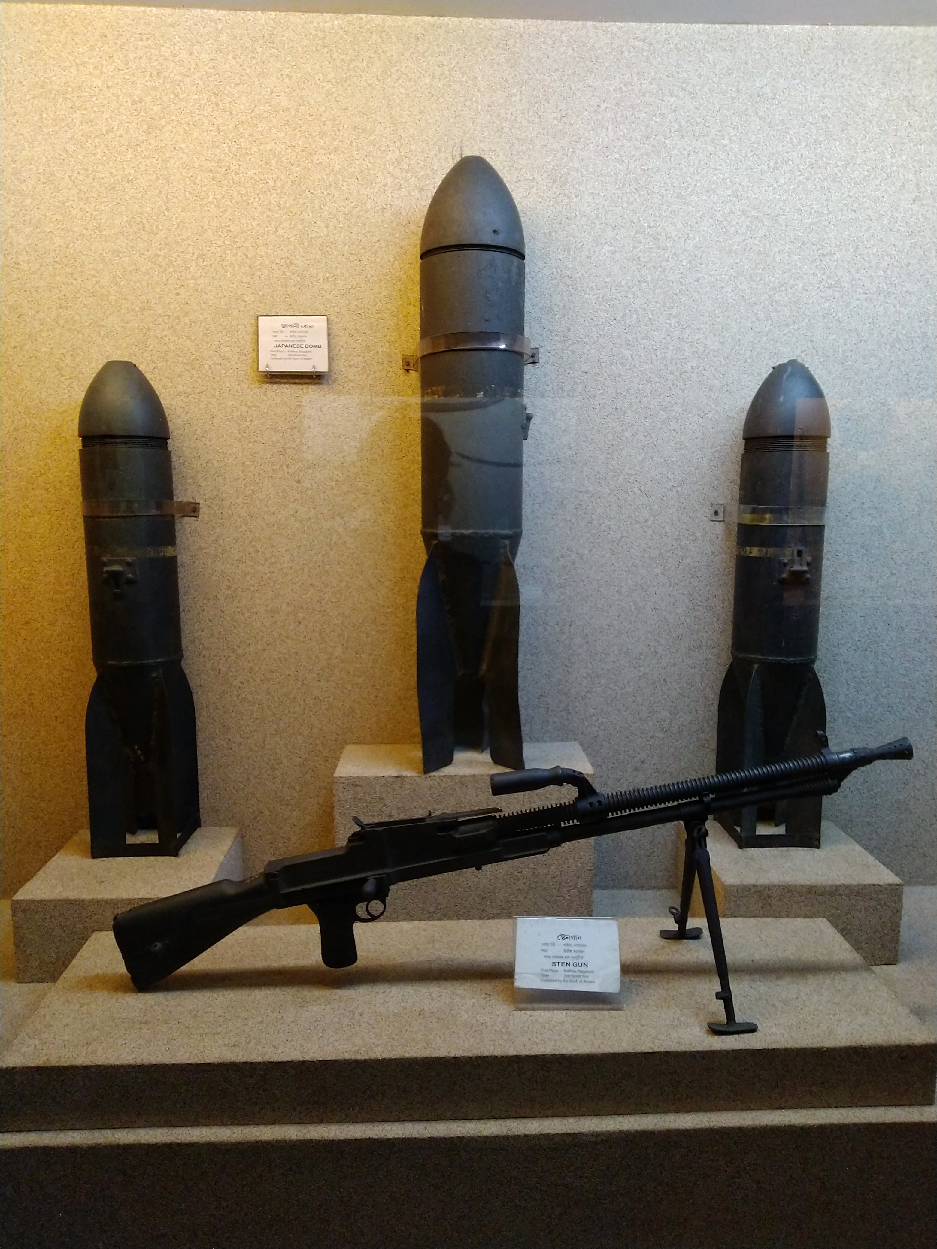 Then we went to the weapons section. We saw used British's guns, bullets, Japanese bombs,guns, machine guns, mortars and a rescue suit used in the WW2.