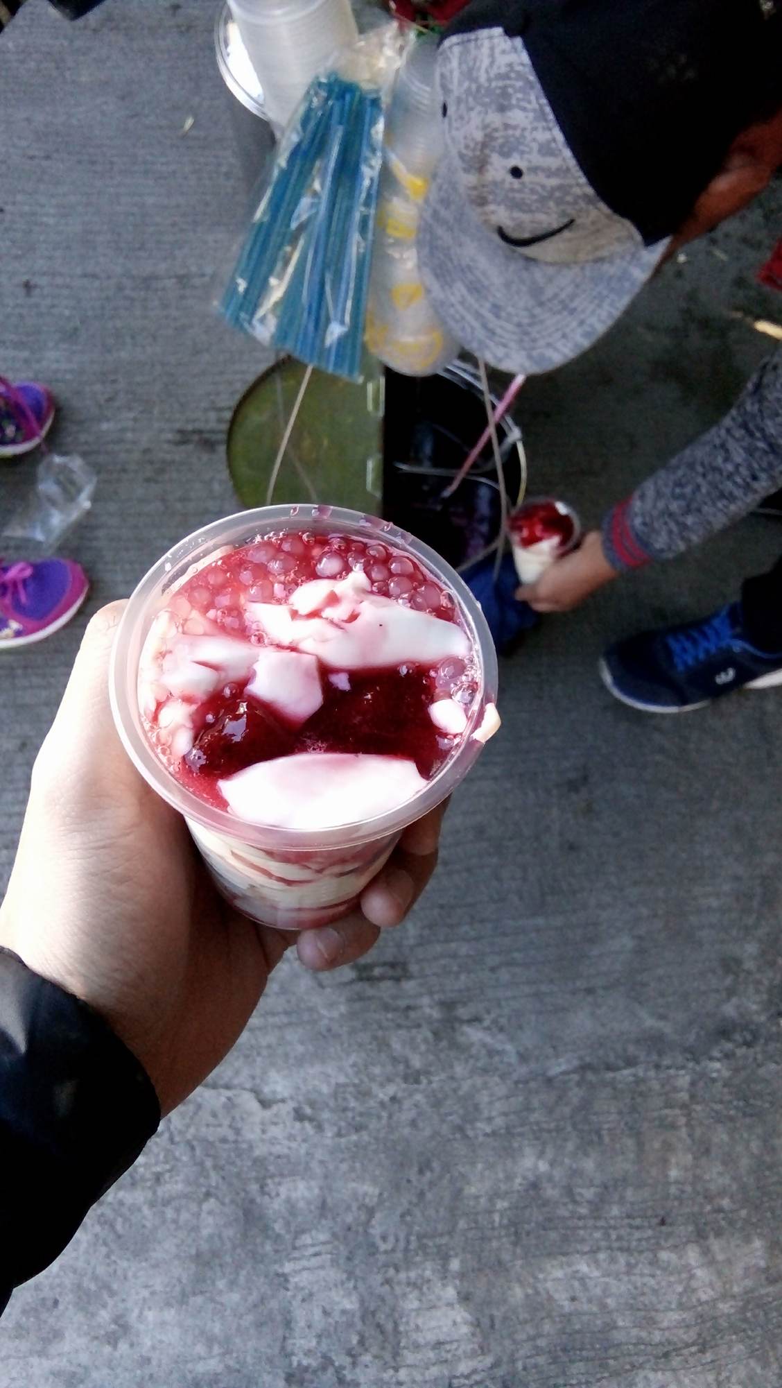 Unlike the usual "taho", a street delicacy made of a very soft and fresh tofu sweetened with liquified brown sugar and tapioca pearls, this one in Baguio, their sweetener is a "strawberry jam" or sweetened strawberries which made it very special.