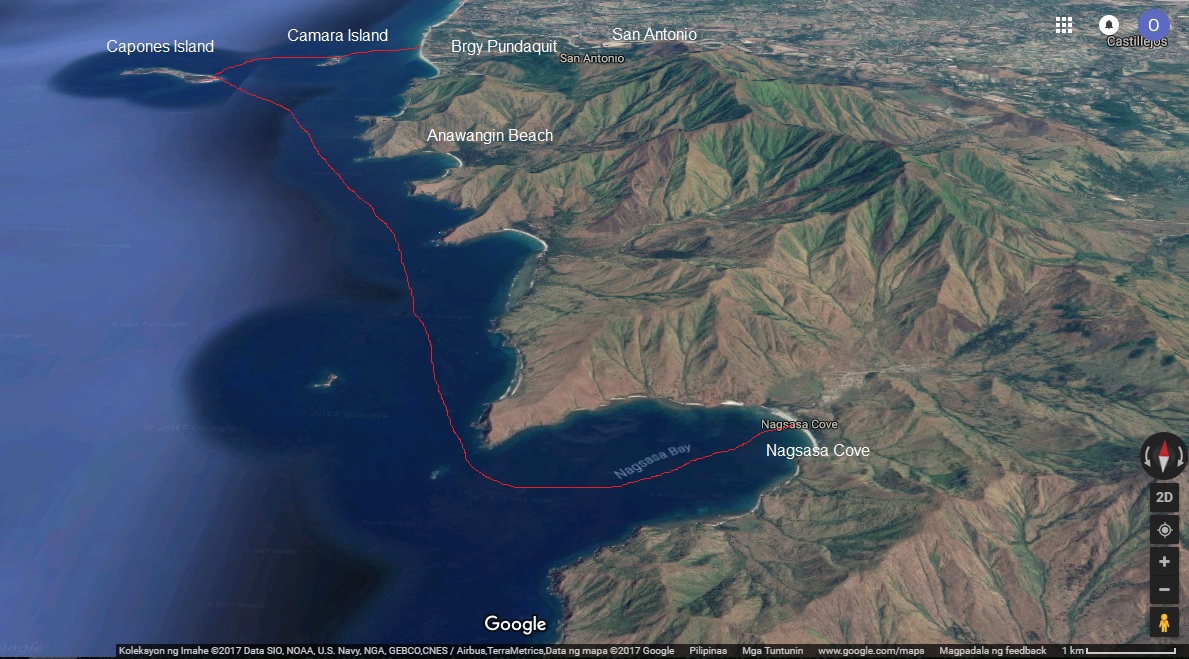 The initial plan was to go to the islands in front of the beach (refer to the photo below), namely the Capones Island (left) and the Camara Island (right).