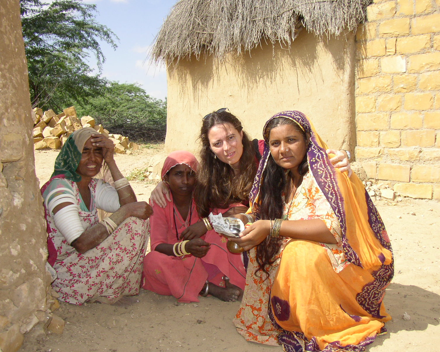 Lying under a tree were three women, resting in the shade. We sat very close, but we as men kept some distance. To avoid imprudence, our friend established conversation with the women, and then she with us. They remained distant but cordial and entertaining. With our questions they laughed a lot, covering some times their mouths with the Sari, the typical bright colors clothes.
