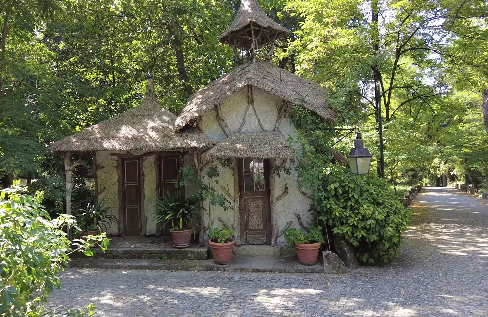 这里还有非常有趣和不寻常的建筑。例如,甚至为门卫建造的小屋也引起了人们的极大兴趣。Guedes 非常重视他的员工,并专门为警卫建造了这座小屋。这不是住宅,而是警卫的小屋。警卫可以在这里休息,特别是在炎热的夏季,并用软木提供隔热。在葡萄牙,软木不仅用于密封葡萄酒瓶,还用于房屋隔热。您还可以在这里看到这些软木树。小屋采用浪漫的英式风格建造,有些人将其与《哈利波特》中的海格小屋进行比较,尽管海格无法进入,因为门很窄。