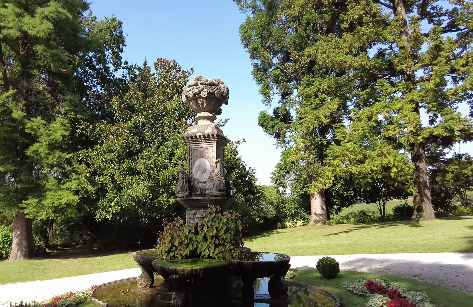 在 Quinta da Aveleda 的公园里,你会发现 Guedes 的主宅邸,保存完好,状况极佳。宅邸前面是四季喷泉,代表他的四个孙女。由于她们出生在不同的季节,这座喷泉就是为纪念她们而建的。还有两棵加州红杉,是创始人为孙女种植的。这些树只有 120 年的历史,但相当高大。
