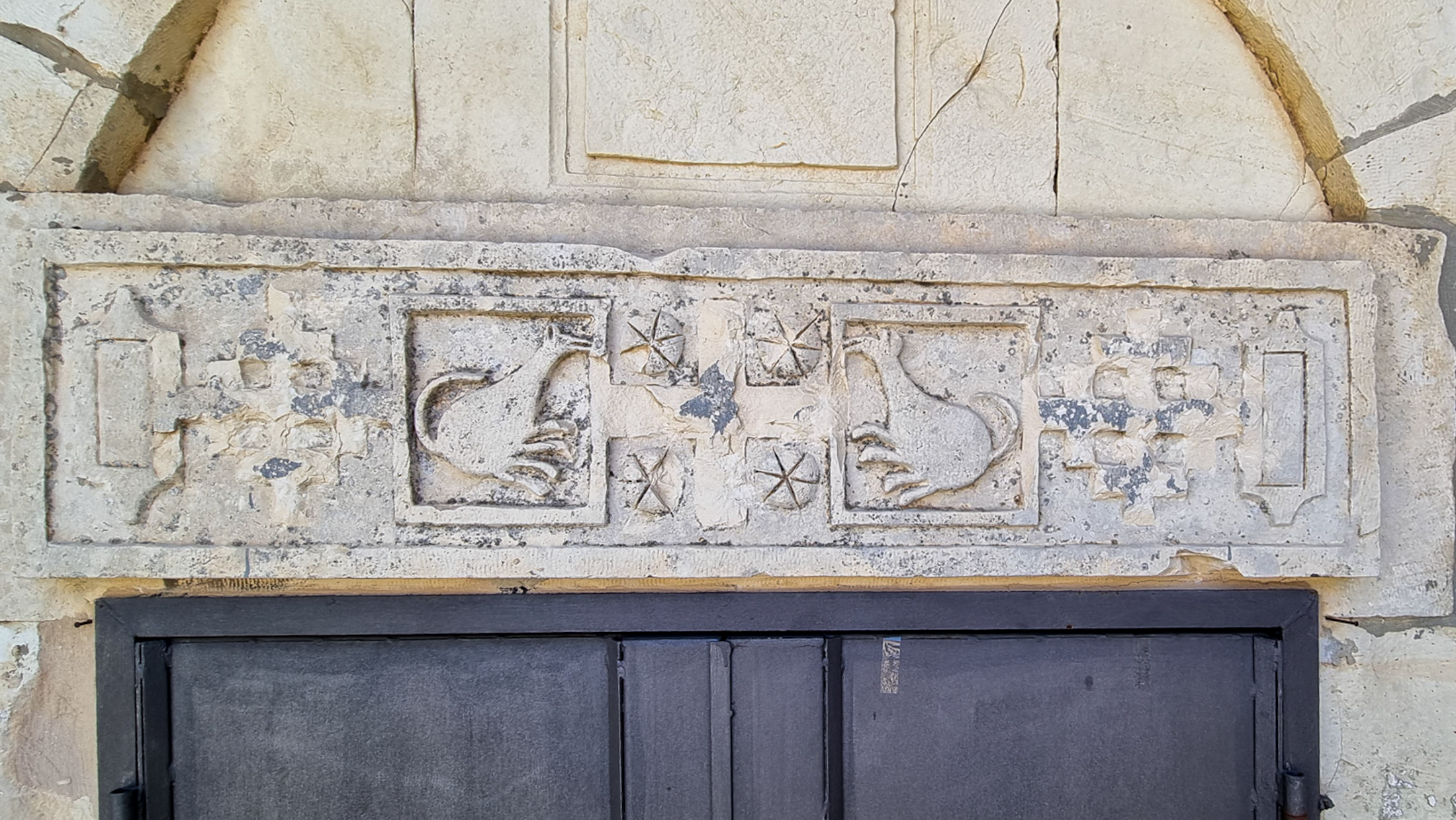 Carvings over the entrance to the Church.