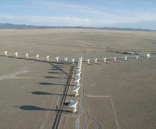 Tucked away in the Magdalena Mountains outside of Socorro, New Mexico is the Karl G. Jansky Very Large Array (VLA), the famous radio astronomy observatory where astronomers track things like stars or gas clouds, or observe planetary formation and magnetic filaments deep in space. The center, operated by the National Radio Astronomy Org. (NRAO) features twenty-seven radio telescopes (25 meter) spread out in a Y array and mounted on railroad tracks, which allows angular resolution and brightness sensitivity to be adjusted by changes in the radius and density of the array.