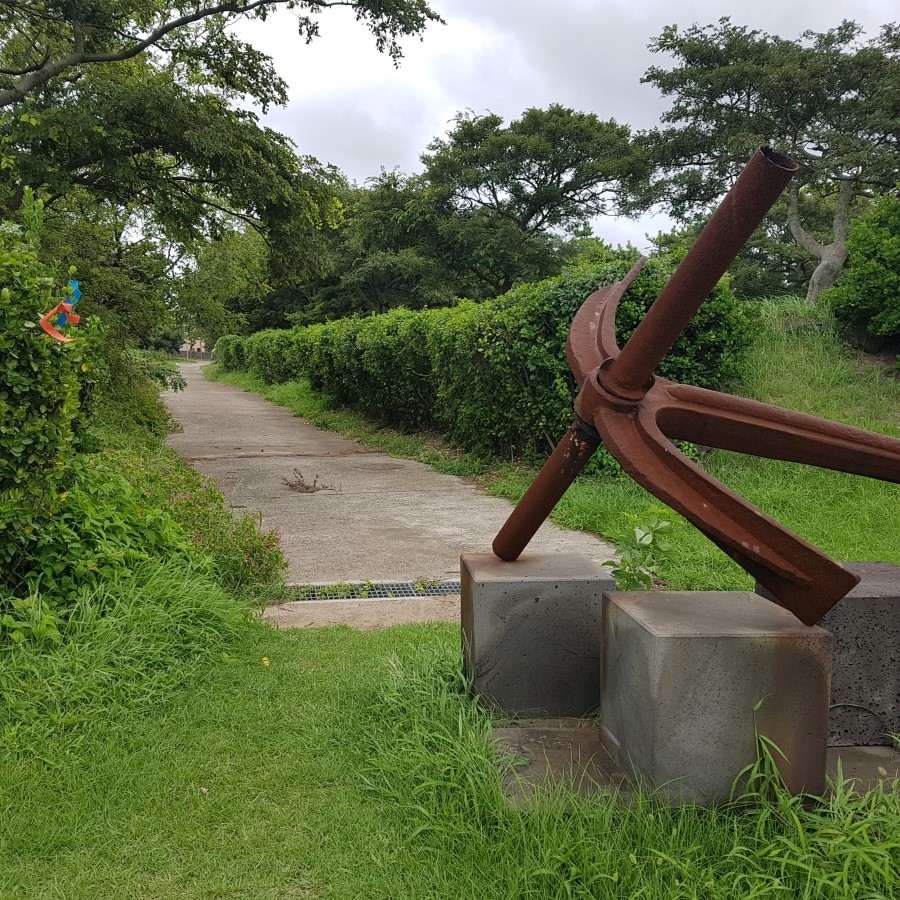 This is the sign-stone for jeju ole trail starting point and you can see a sculpture beside the sign-stone. It is Ganse. The word comes from Ganse-dari,meaning slow idler in Jeju. Ganse points toward the direction of the route at a forked road.