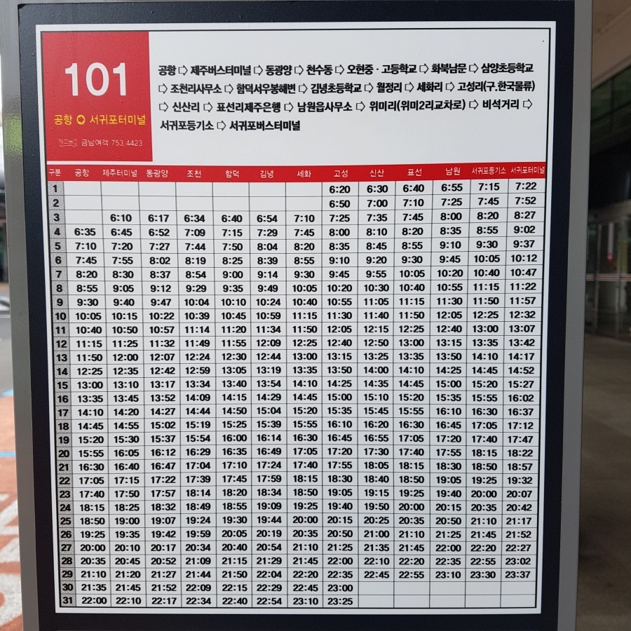 1층 입국장 2번 탑승장에서 서일주도로를 경유하는 102번 서귀포행 직행버스를 탑니다.