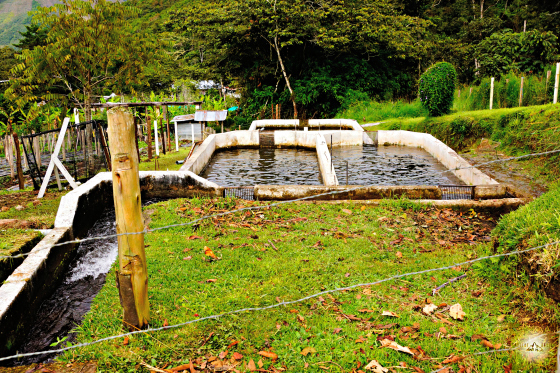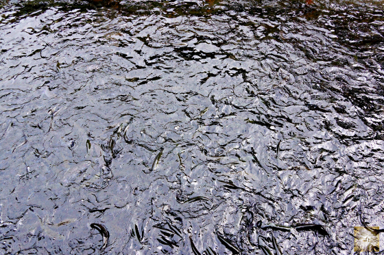 One of the holding ponds packed with trout.