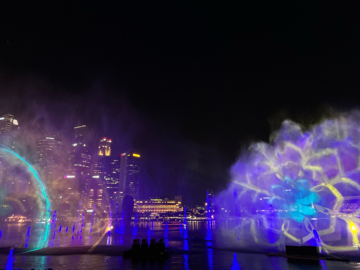As for my first photo, here's a shot of the beautiful light and water show called Spectra. This is a free nightly show which runs for 15 minutes every 8PM and 9PM on Sunday to Thursday, and 8PM, 9PM and 10PM every Friday and Saturday. You may watch this display at the Events Plaza in the iconic and famous 5-star hotel Marina Bay Sands in Singapore.