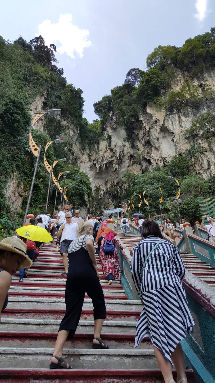 She suggested that we could visit the Batu Caves in Peninsular about 1,5 hour out of the city. We took the train as that is so cheap transportation in KL. The picture shows the entrance of the Batu Caves.