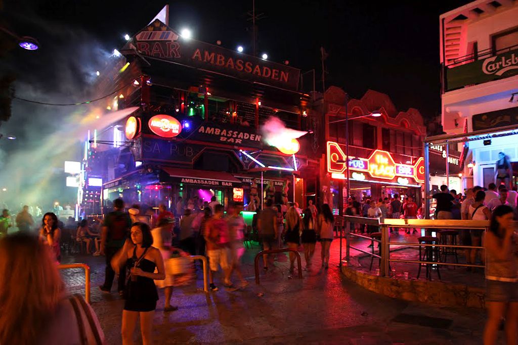 People spill out of bars all over the center of Ayia Napa turning the streets into one big party.