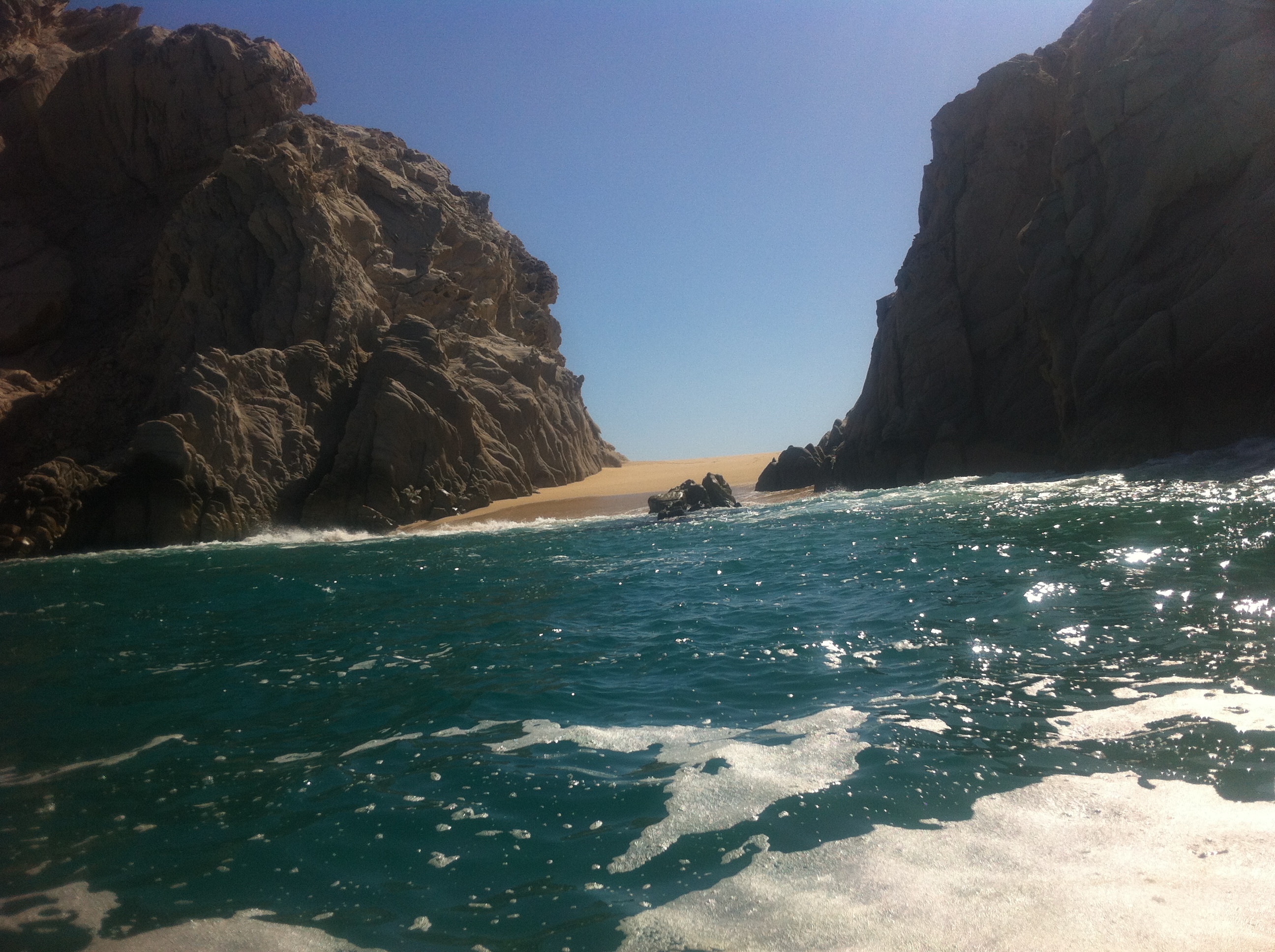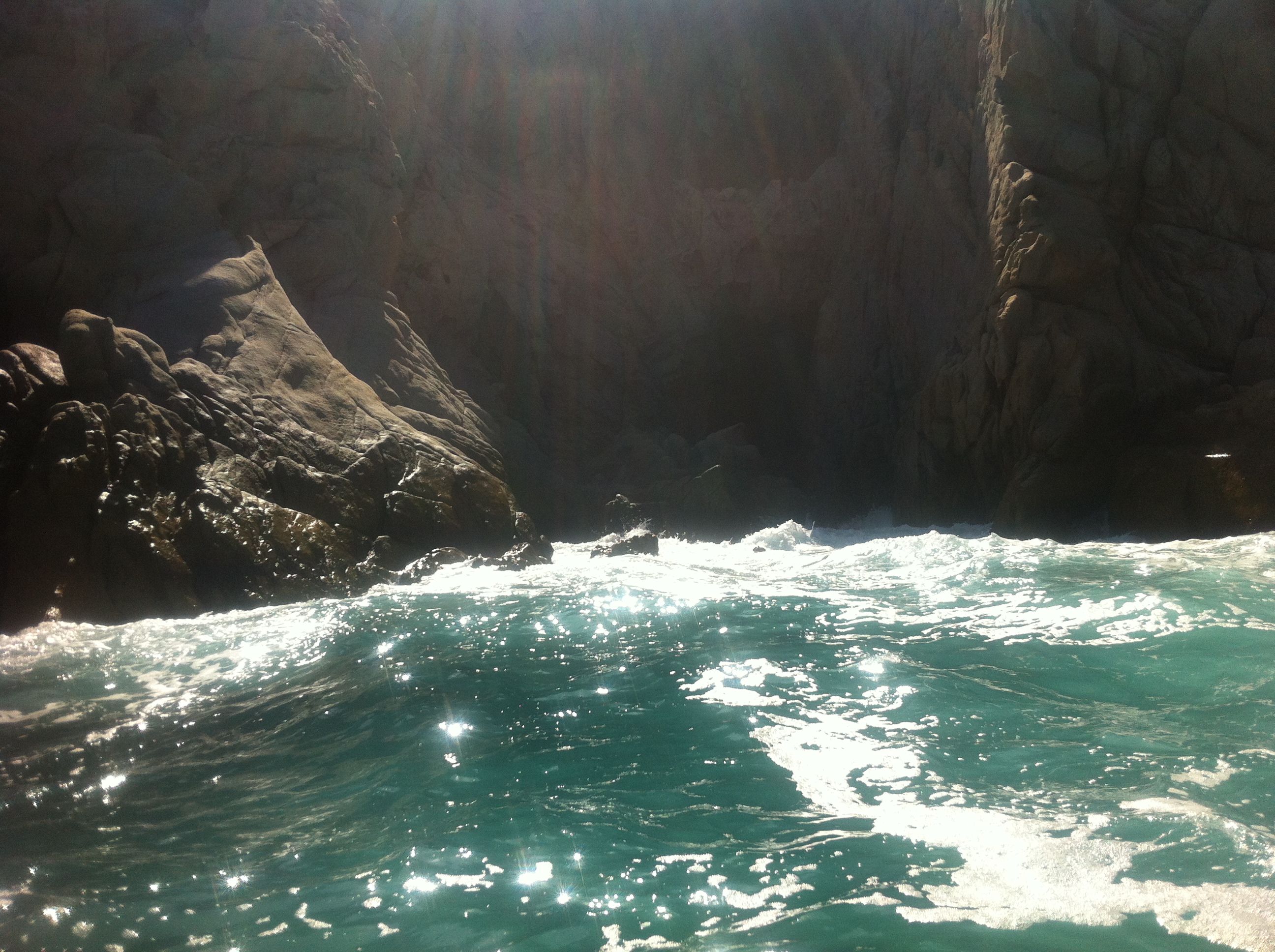 In the middle of that cave the waters of the "Sea of Cortez" and "Pacific Ocean" collide.