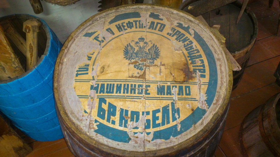 One of the first exhibits (bones and fossils did not shoot). A barrel of machine oil, it has a very shaggy age.