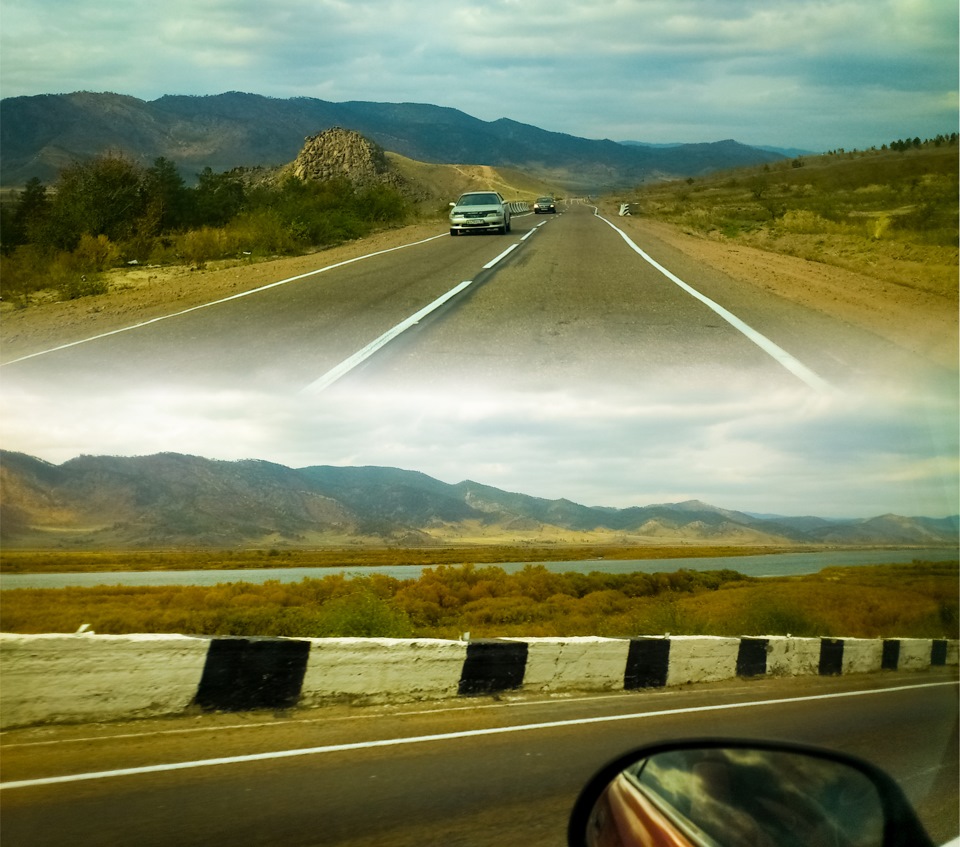 Road back. On the top photo All the same Sleeping lion. And the river Selenga (below).