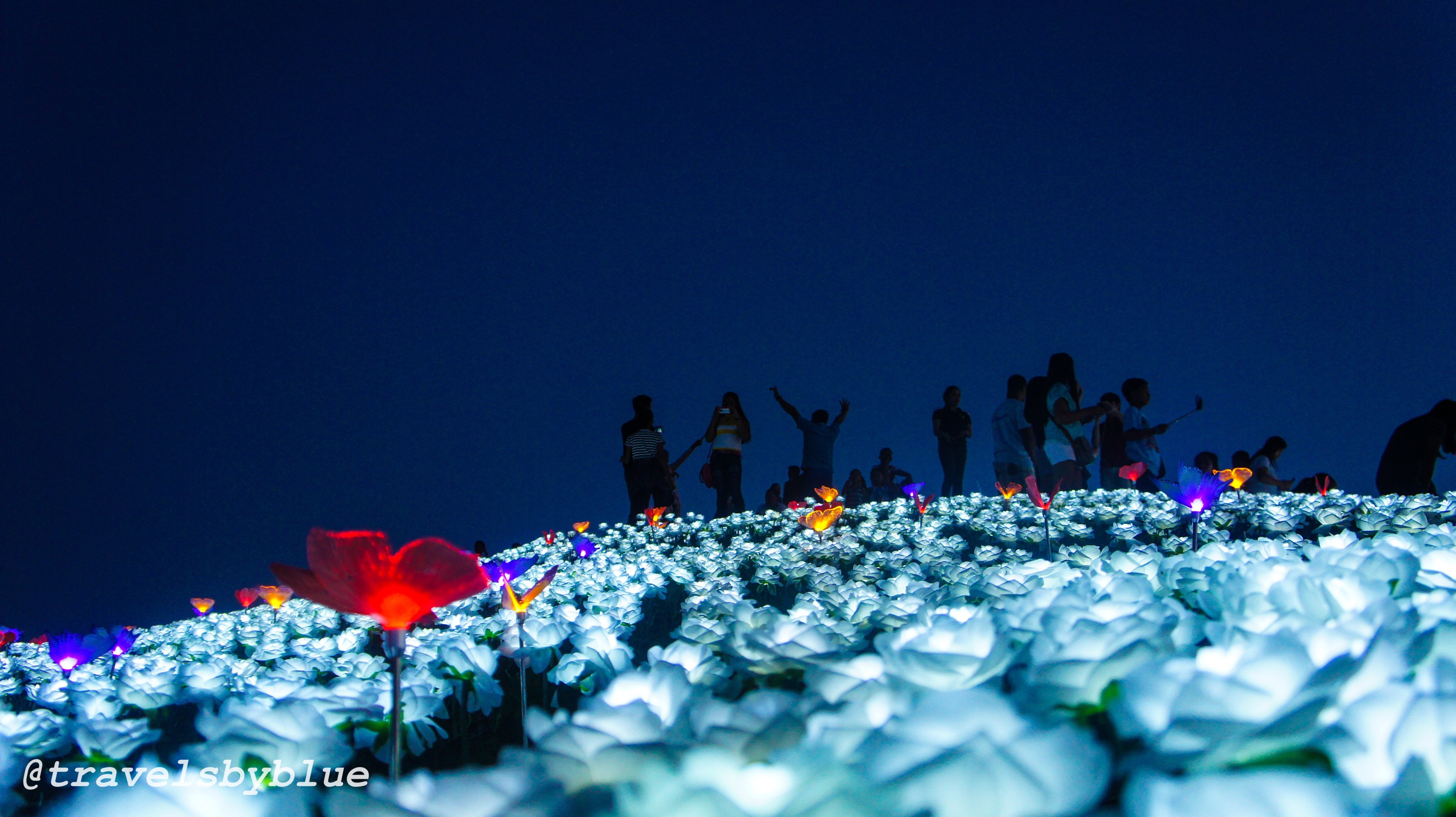 @travelsbyblue takes us to a park composed of 16,000 artificial roses with led lights located in the highest part of the City. 16K Blossoms was found at Lintaon Peak, Baybay City in Philippines. The 16,000 enchating blossoms ligthen up after sunset, with the colorful butterflies that look like they're sipping the nectar of the flowers. There are also red roses formed as heart and letters as BAYBAY. Representing the love for the City.