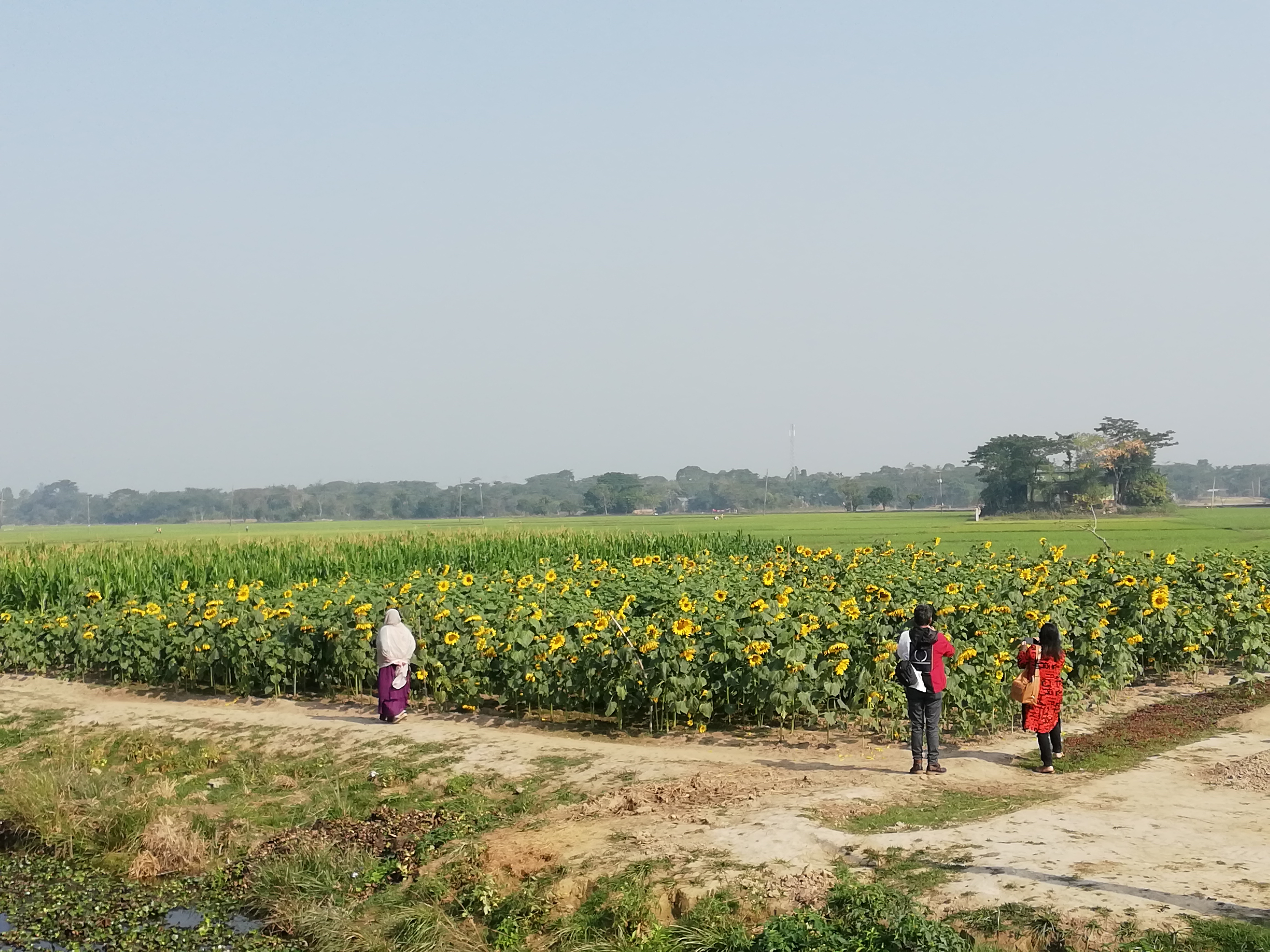 সূর্যমুখী বাগান এমনিতেই দেখতে অনেক সুন্দর। সকালের রোদ ঝলমলে পরিবেশে বাগানটি দেখতে আরো অনেক সুন্দর লাগছিল। আমরা সকলেই বাগানে গিয়ে ছবি তুলতে লাগলাম। কিছুক্ষণ সূর্যমুখী বাগান এর আশেপাশে ঘোরাফেরা করে আমরা আবার গাড়ির দিকে ফিরে আসলাম। কারণ সামনে আমাদের দীর্ঘ পথ।