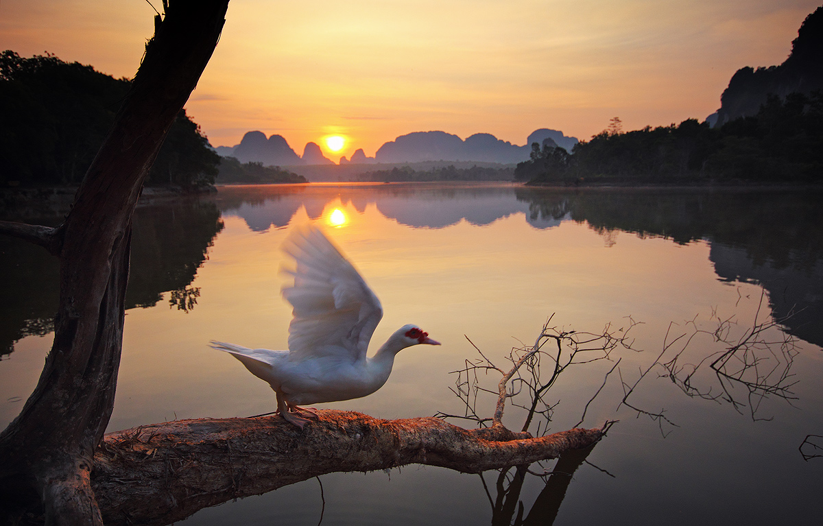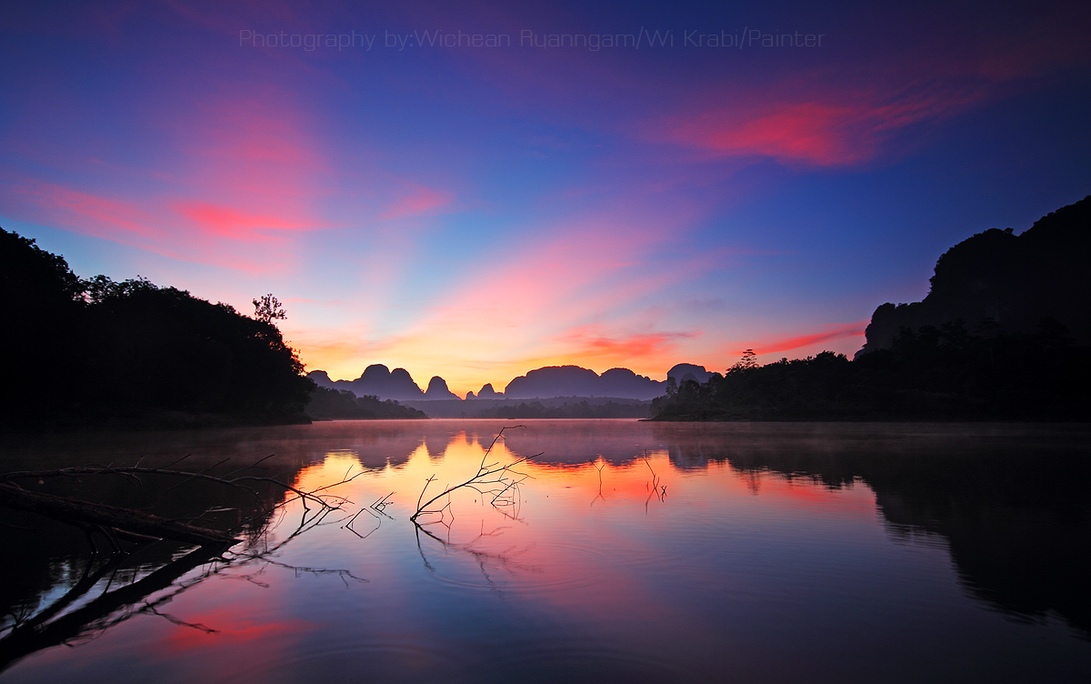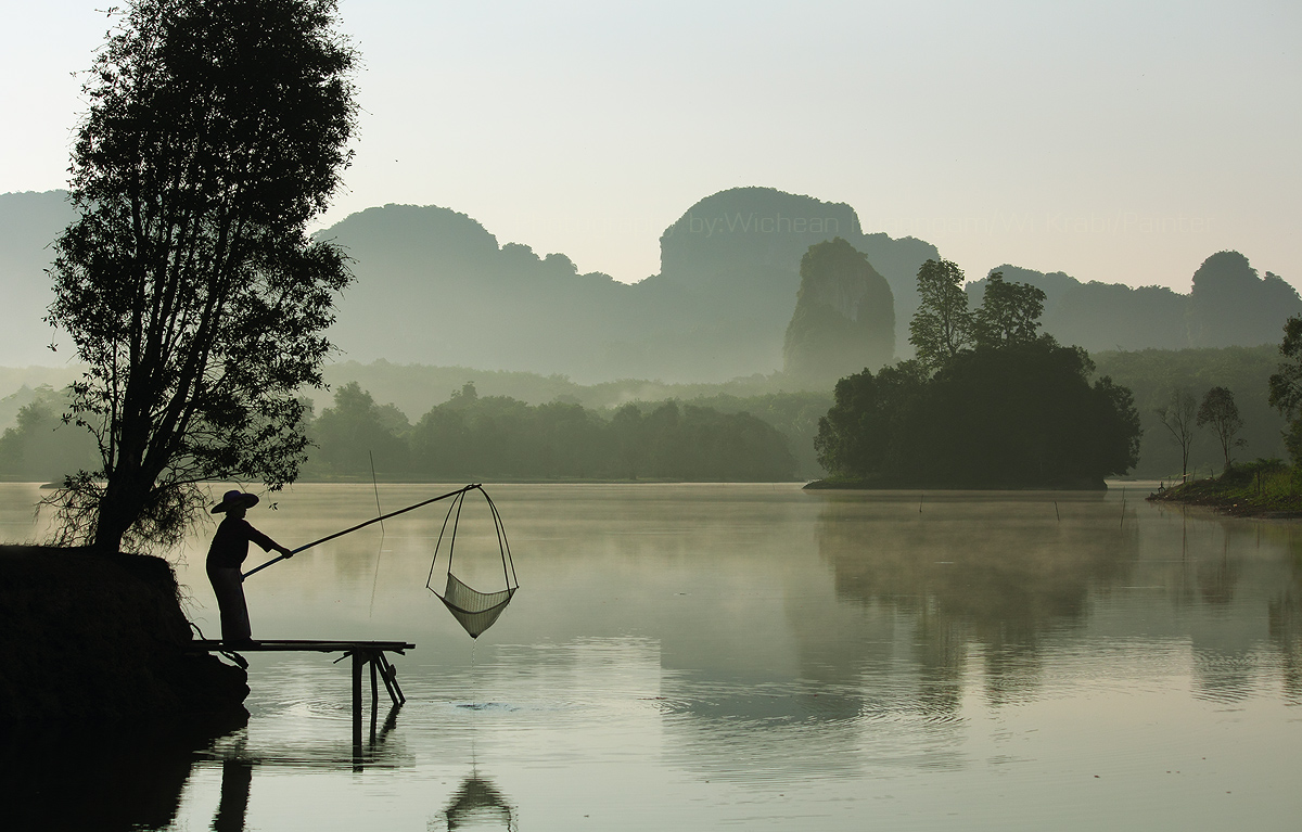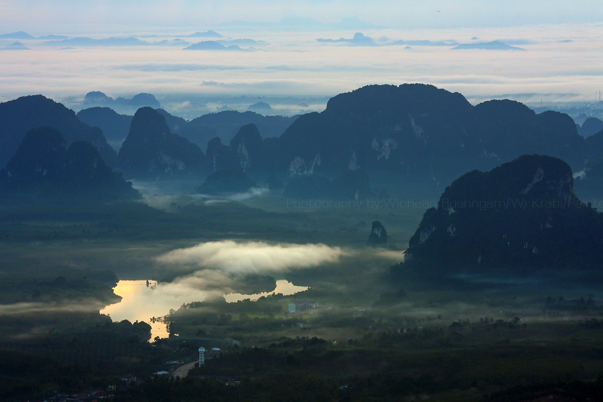 Nongtalay is a large pond not too far from famous beach of Krabi province, Thailand. The scenery is very beautiful, especially during the early morning. Surrounded by limestone mountains making this area look stunning like a mysterious village from the novel.