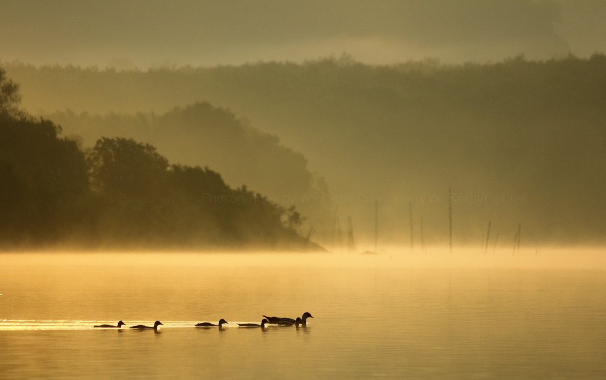 A flock of ducks and birds living in the morning. Enhancing the vitality to Nongtalay.