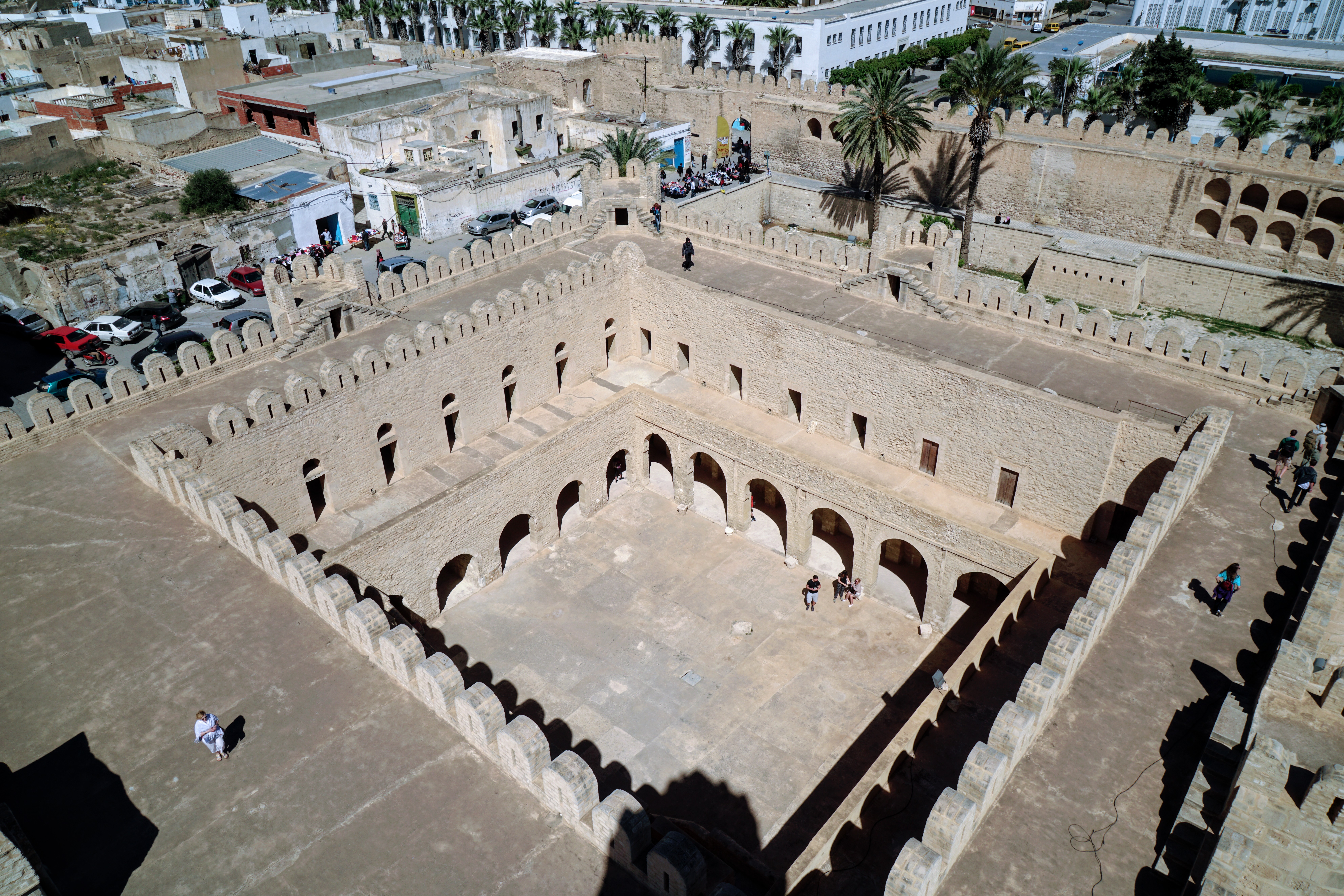 Just like most medinas, there is a beautiful mosque right in the middle of town. The great mosque of Sousse started construction in 851 and is an active mosque with a beautiful courtyard and really nice arches. There were a lot of people there who were all students of the Qur'an, learning and studying.