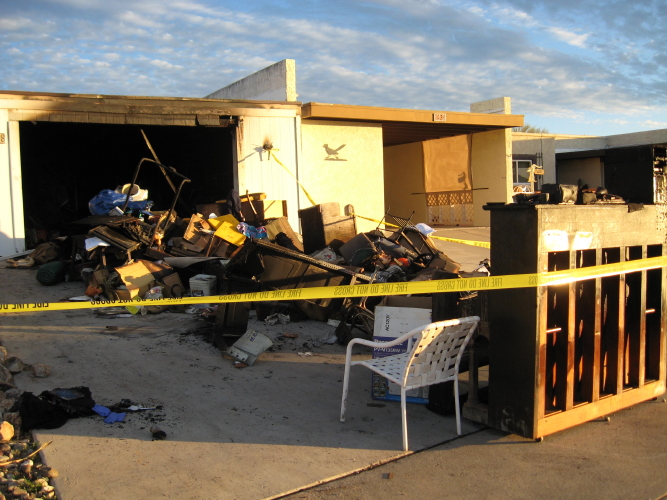 They cut a hole in the garage door to access the fire, and, of course, went up on the roof to make sure everything was out. They grabbed everything that was in the garage and tossed/pushed it out onto the cement apron, including a piano and some easy chairs. The good news: the occupants got out safely.