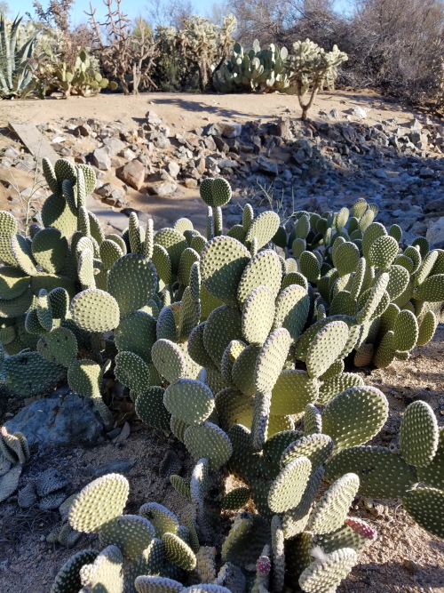 Despite the stiff breeze, we took the dog for a midday walk. It seems as if most of the flora in this part of Arizona is prickly and stabby, but this variety of cactus is actually smooth and soft.