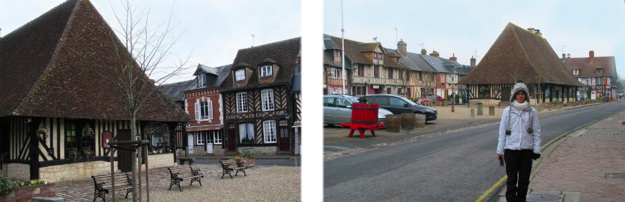 Era inverno, então as árvores estavam sem folhagem, mas o frio também tem seu encanto! Beuvron-en-Auge tem algumas pequenas lojas e lugares para comer, sendo que o restaurante Auberge de la Bouled’or oferece uma cozinha tradicional da região com um cenário típico da Normandia.