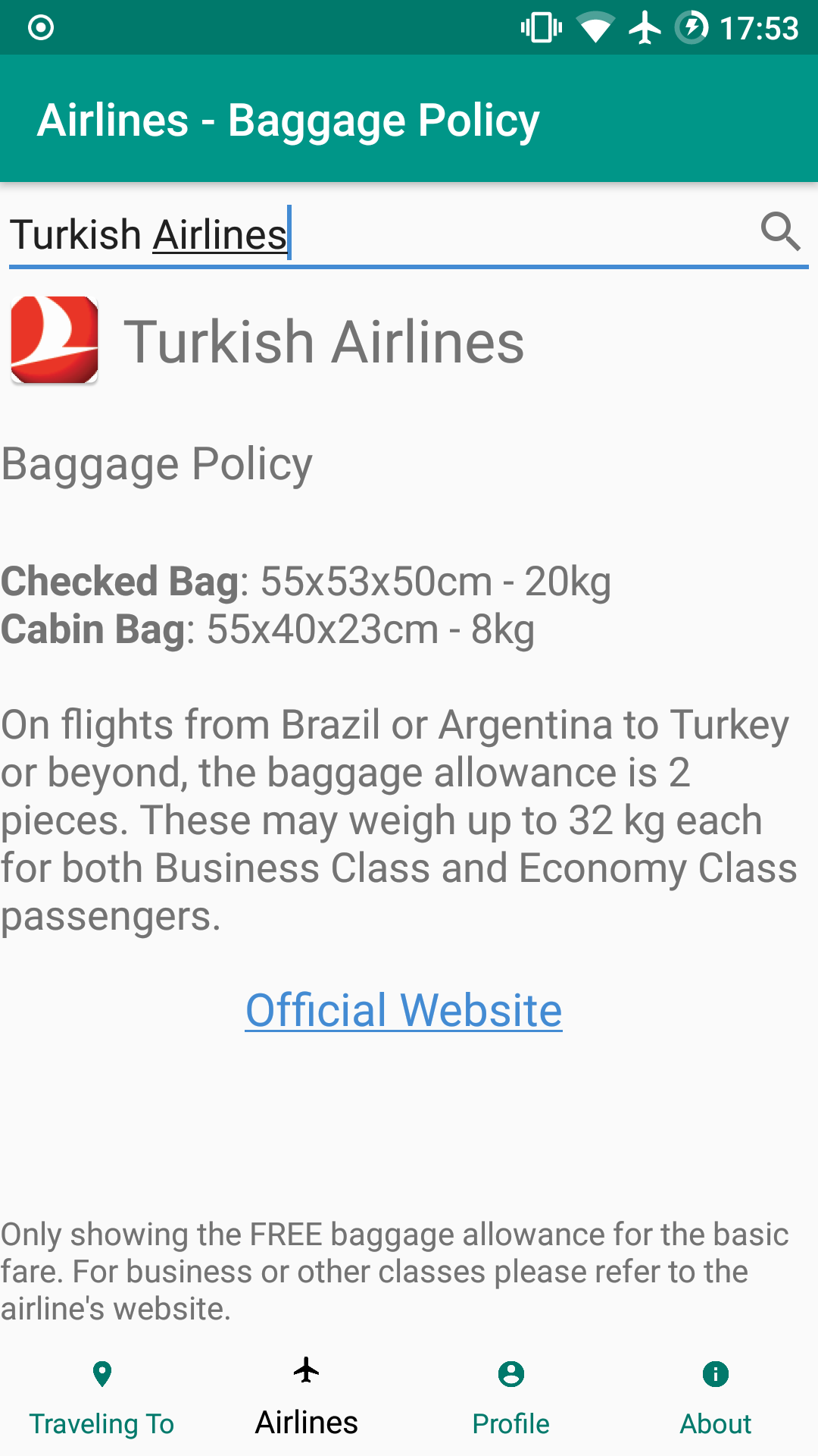 Airline's Baggage Policy: