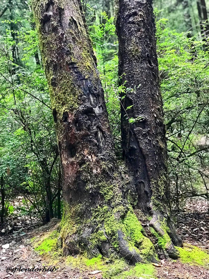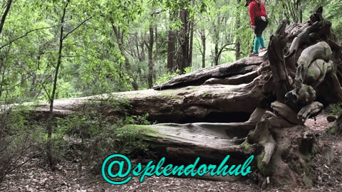 Trees with holes big enough for several persons to stay in. These holes were caused by fire from lightning strike but the tree is still alive