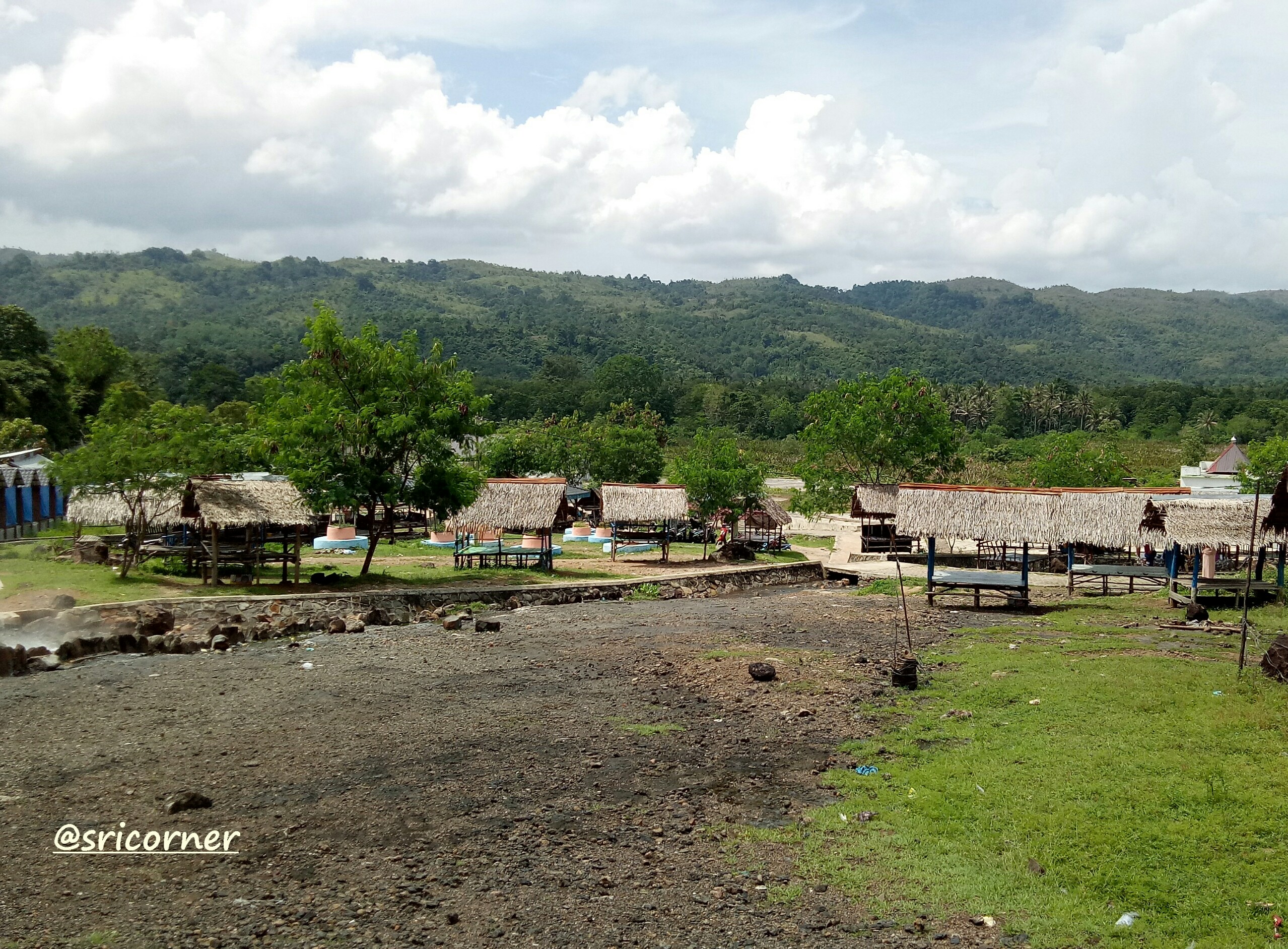 Di lokasi wisata, pengunjung disambut dengan pemandangan gunung yang hijau dan gumpalan asap yang menguap ke udara. Asap tersebut bersumber dari air panas yang memenuhi saluran kecil di kaki gunung. Bau belerang pun kadang tercium.