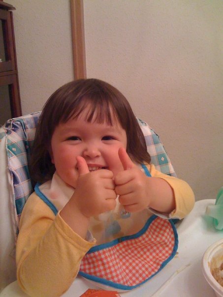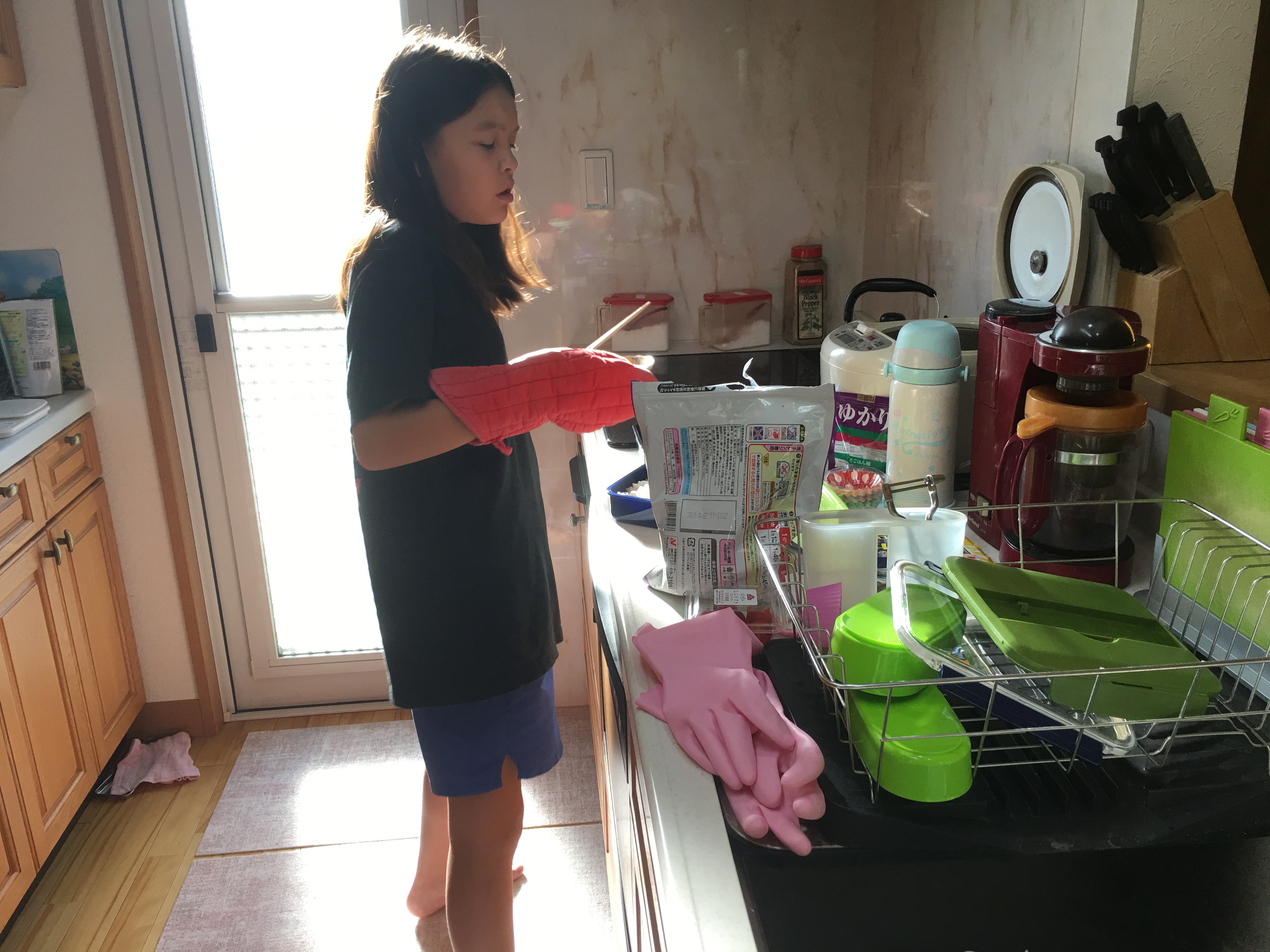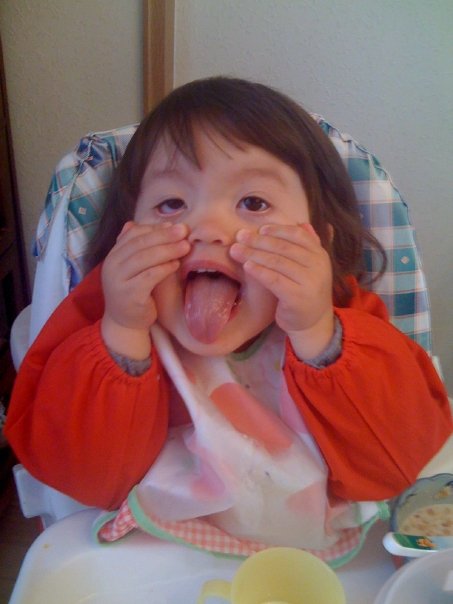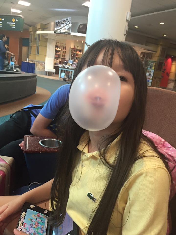 Very proud of her gum-bubble skills, this was last year when we returned from Okinawa where she got scuba-diver certification.