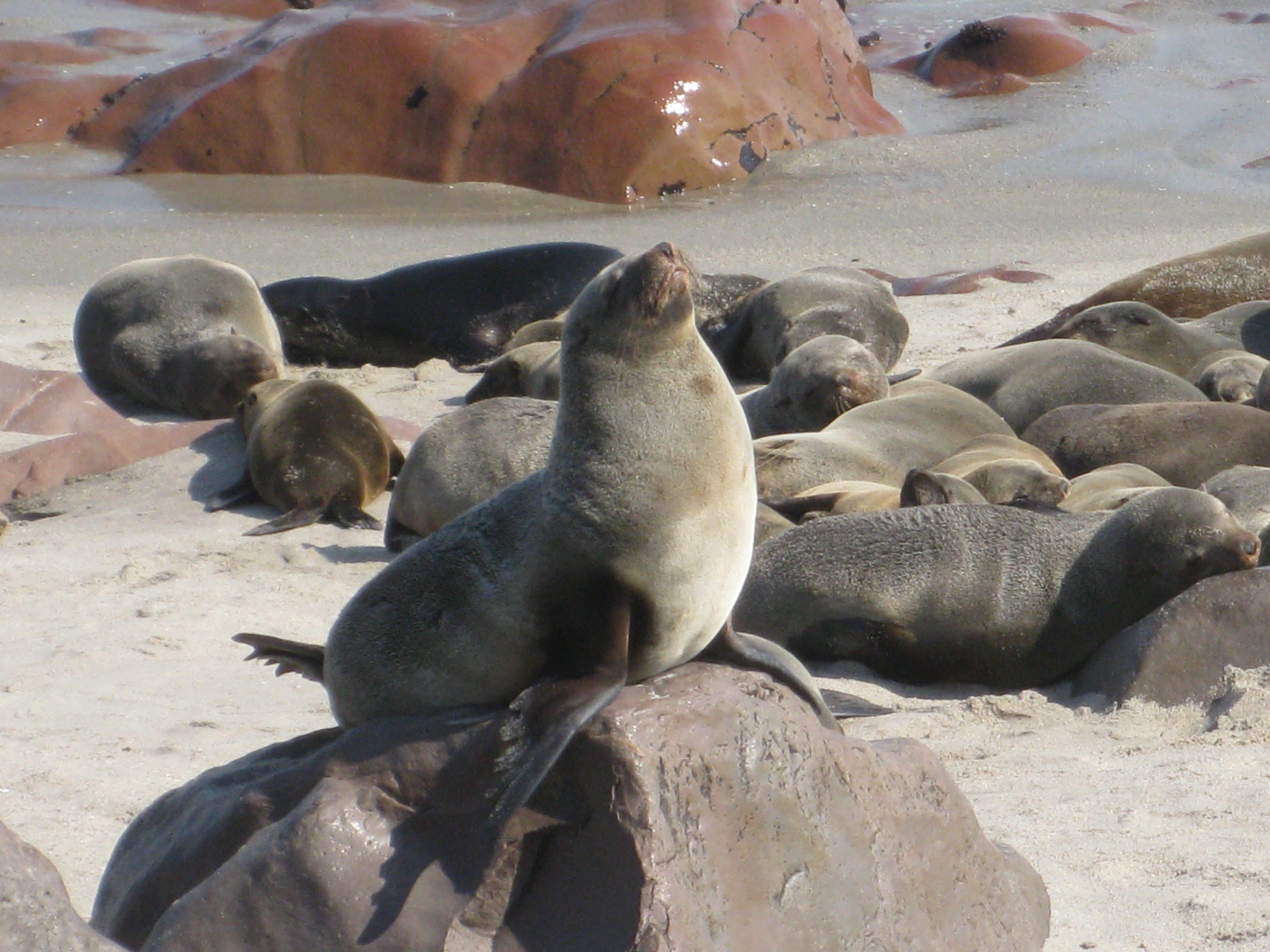 On our way to the coast we got stuck. We were all trying to give it a push and with a trick that we use on snow in Norway as well we finally got out of the rut. We then headed for a seal colony. If you have never been to a seal colony then for your own sake take something that smells nice and put it in a sealed bag. Because after you visit such a place you would definitely like to smell something nice afterwards :-p
