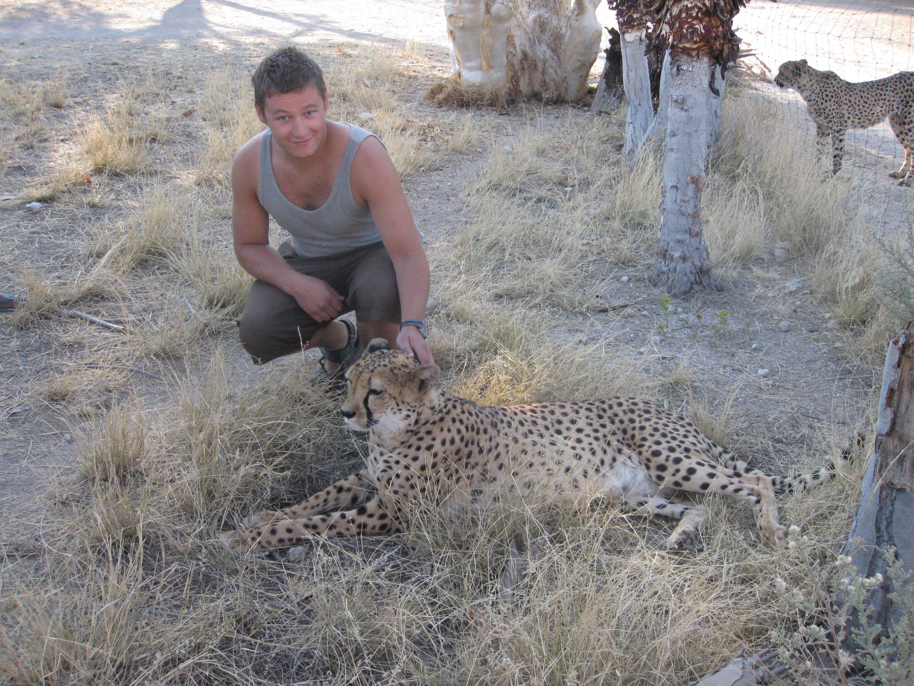 When we got to the Namibian border we had to stay over night there because we had Roger, the Romanian playboy photographer with us. Apparently if you are a Romanian then you might have a hard time at borders in Africa. This was not the first time he was unwanted. However because of this I was not able to swim with crocs :-( Our first stop in Namibia was a cheetah farm and reserve. They told us that farmers in the area shot cheetahs on sight. So the cheetahs in the reserve was saved or captured cheetah that were going to close to wildstock in the area. Amazing animals, but I would not want to be chased by one :-p