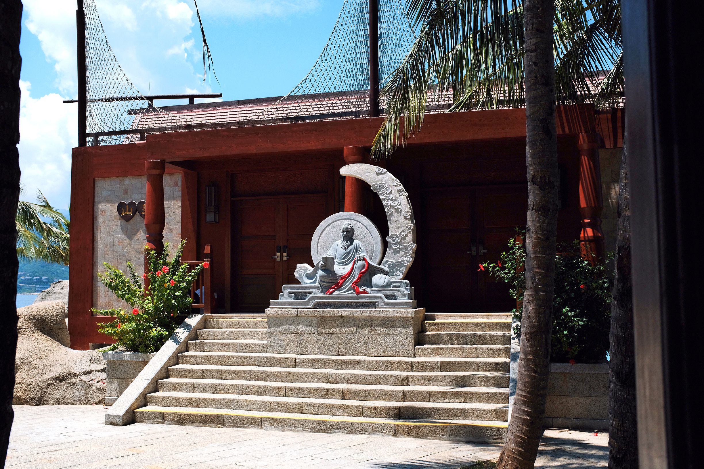 Inside The Place Where Friends Meet pavilion, you can see the beautiful sea view and Lover's Bridge. Enjoying the famous coconut water in Hainan, while watching the charming scenery, what a wonderful life it is!😊