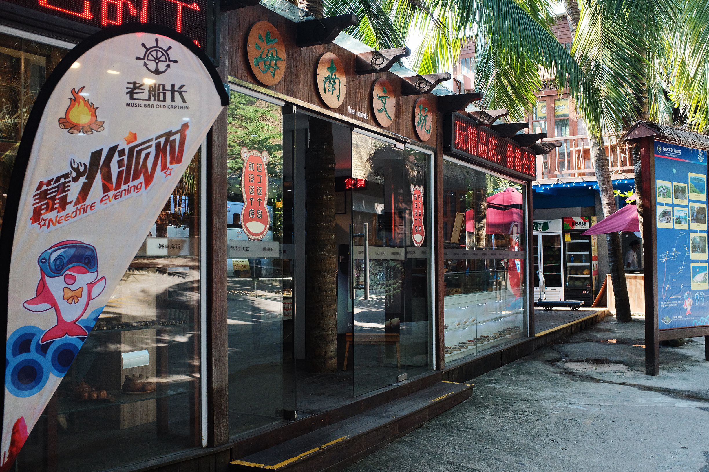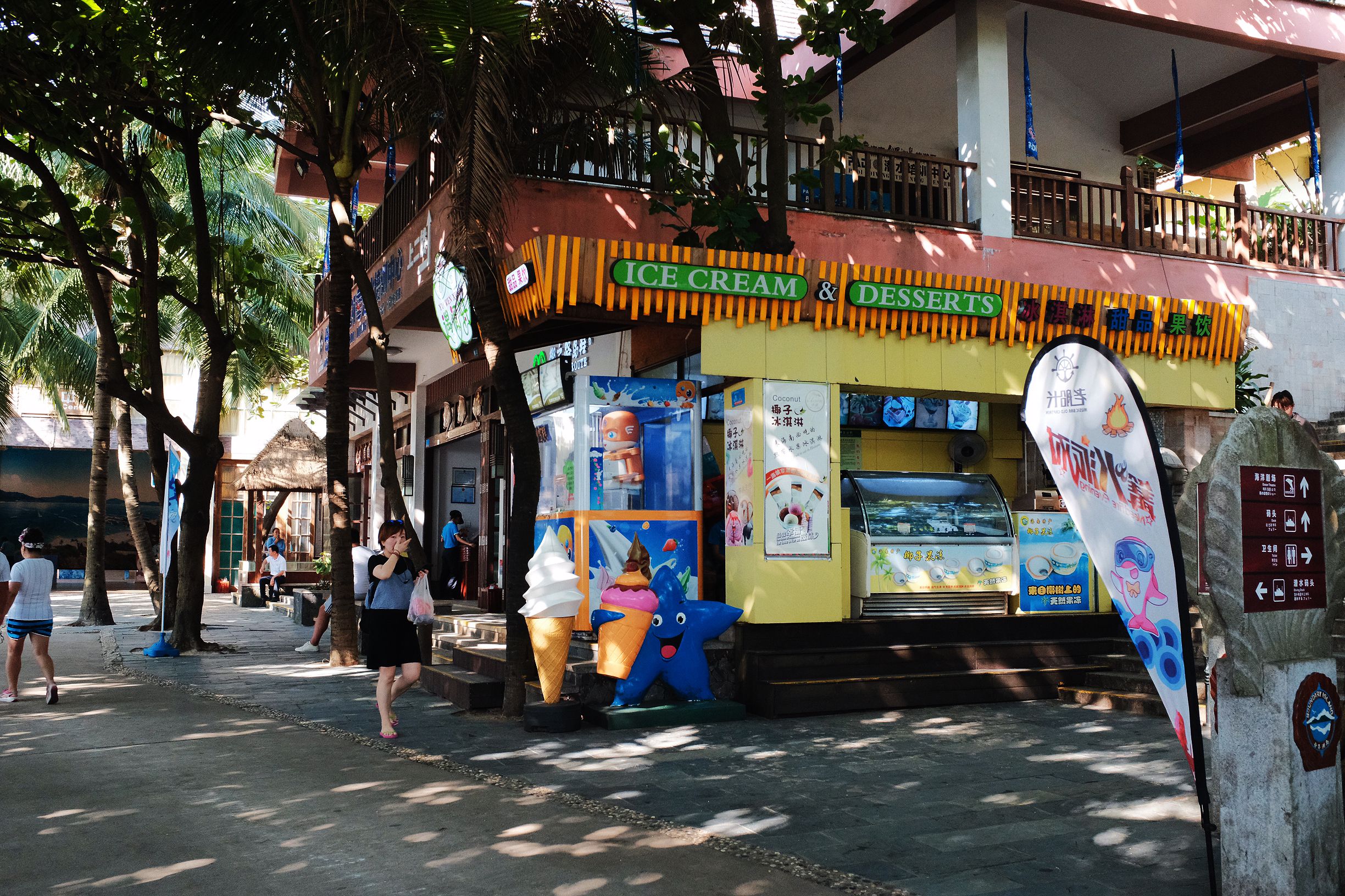 经过了分界洲的游客中心就是一条行人路,沿路都有很多精品商店和餐厅,走到累了或饿了,可以停下来歇歇吃吃东西。如果你不想走,可以付RMB 40元乘坐电瓶车上半山看海喝咖啡。我选择到处走走看看这美丽的海岛,探索分界洲岛的每一个角落。