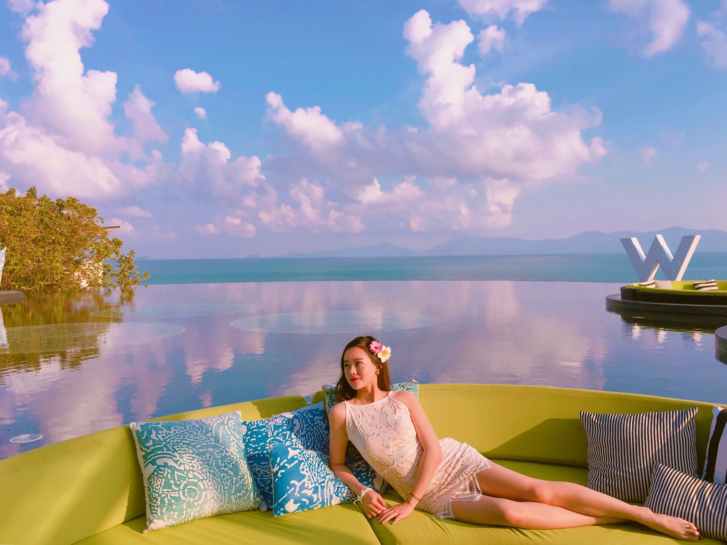 这一次我越过了平时旅游选酒店的界限,选择了苏梅岛的W酒店,被大家誉为苏梅岛的6星级酒店。大约开了15分钟,终于快到了,可以看到W酒店远远的在山坡上。我超级期待入住这家酒店,當車子缓缓开近,我发现道路上的转折处都有酒店的安保设施和工作人员,给人一种非常安全回家的感觉。我非常喜欢的是W酒店时尚前卫的设计装潢。W的logo用的是银色的反光材料,很有未来太空的感觉。酒店的服务也是最大的亮点,车子开到大堂门前,就有专人接过钥匙替你去停车。迎接柜台是由泰国的特色的图案。服务人员帮你把行李拿下车,为你寄存行李。这就是我最爱的空间了。Woobar终于出现在眼前了。水上的沙发,无边的泳池。这里是W酒店最有名气的拍摄角度了,曾经出现在无数杂志网站上。走过边上的长廊,风景美极了。想去到酒店的每一个空间,都会有车子接送,超级方便。今天的文章就写到这里吧,之后还有更多关于W酒店的探索等着和大家一起分享。