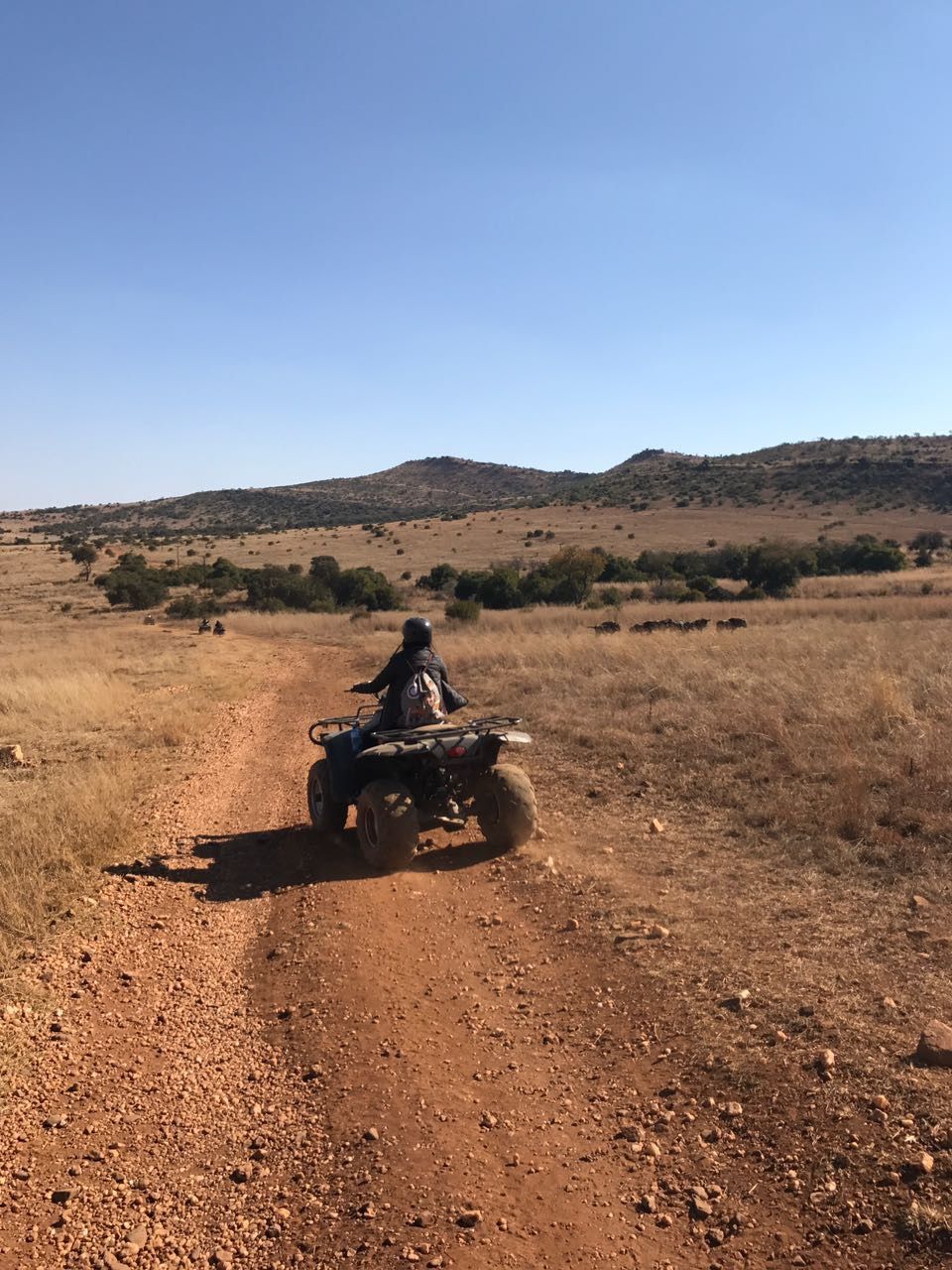 Myself and my friends had experience with riding quad bikes which made the days adventure much easier. And so we began the trail ... While on the trail we seen some incredible animals and the chance to come in contact with a hyena. We seen Giraffe , wildebeest , ostrich , springbok , zebra and baboons.