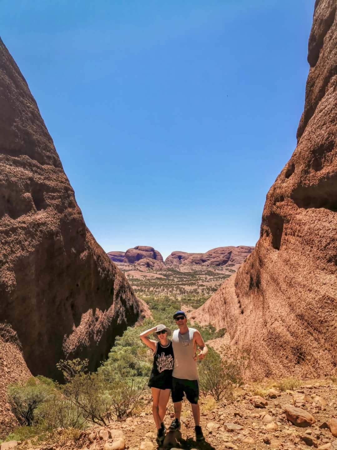 After yesterday's early flight we have a much needed sleep in. Load up the RAV with water and snacks for our day trip to the Olga's. First stop is the Valley of the Winds. Walk to the first lookout - Karu, a moderate 2.2km walk from the carpark. Since it's before 11am and still under 36 degrees we head to the next lookout - Karingana. This 5.4 km walk is classified as difficult but we found it quite easy. Rewarded with a nice view of the valley below.
