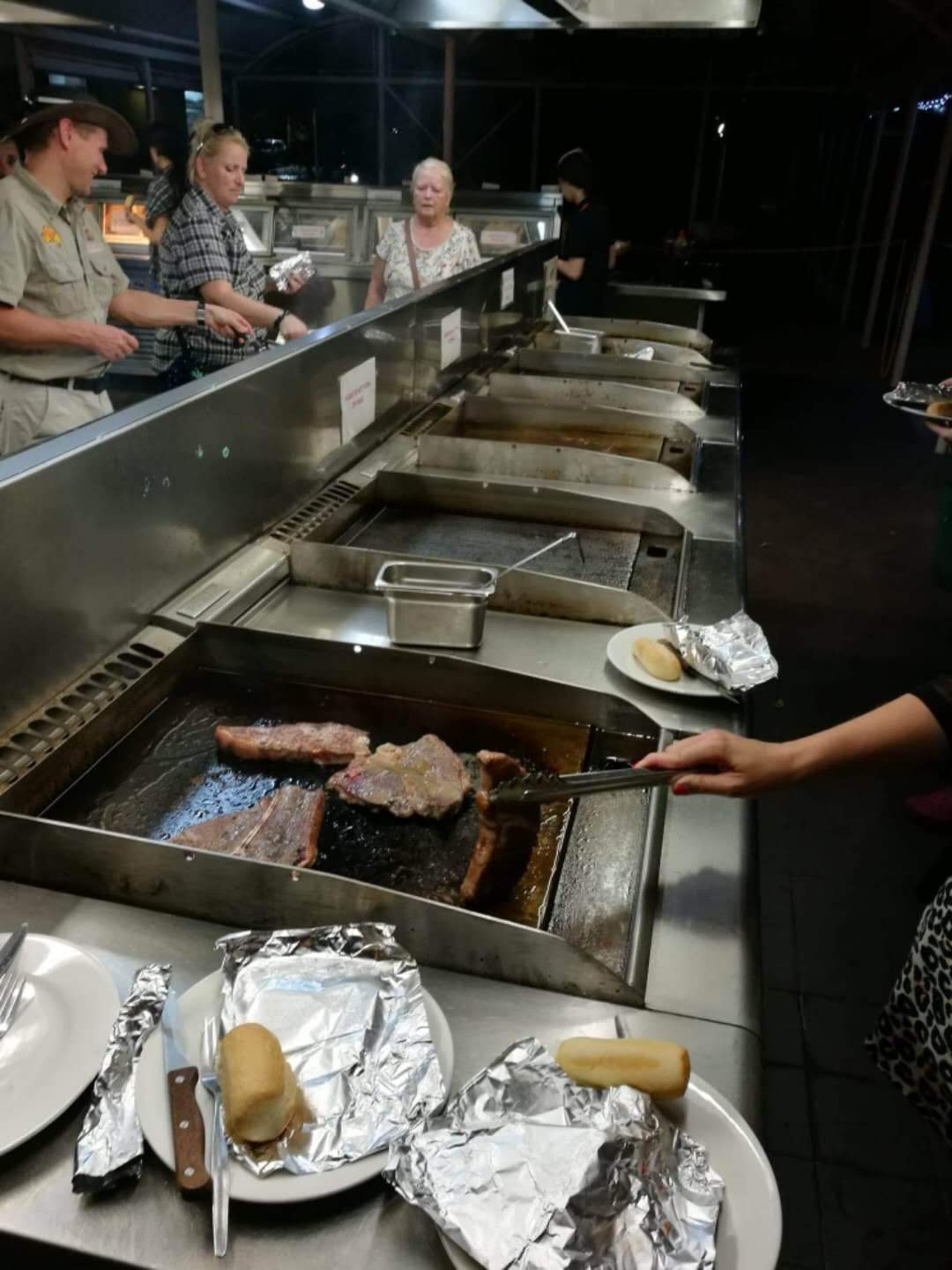 For our last night we decide to eat out for dinner. Still have to cook our own meat though, as we were eating at the Pioneer BBQ and Bar. How it works is you choose your meat, pay for it, then cook it yourself on the BBQs provided. Full salad bar included with as many helpings as you like. We went with two t-bones and two porterhouse. The t-bones weren't the best looking steaks we have ever seen but proceed to the BBQ station. Try and cook our steaks as expertly as we can, if we don't its not like we can complain and send them back "to be done right" haha.