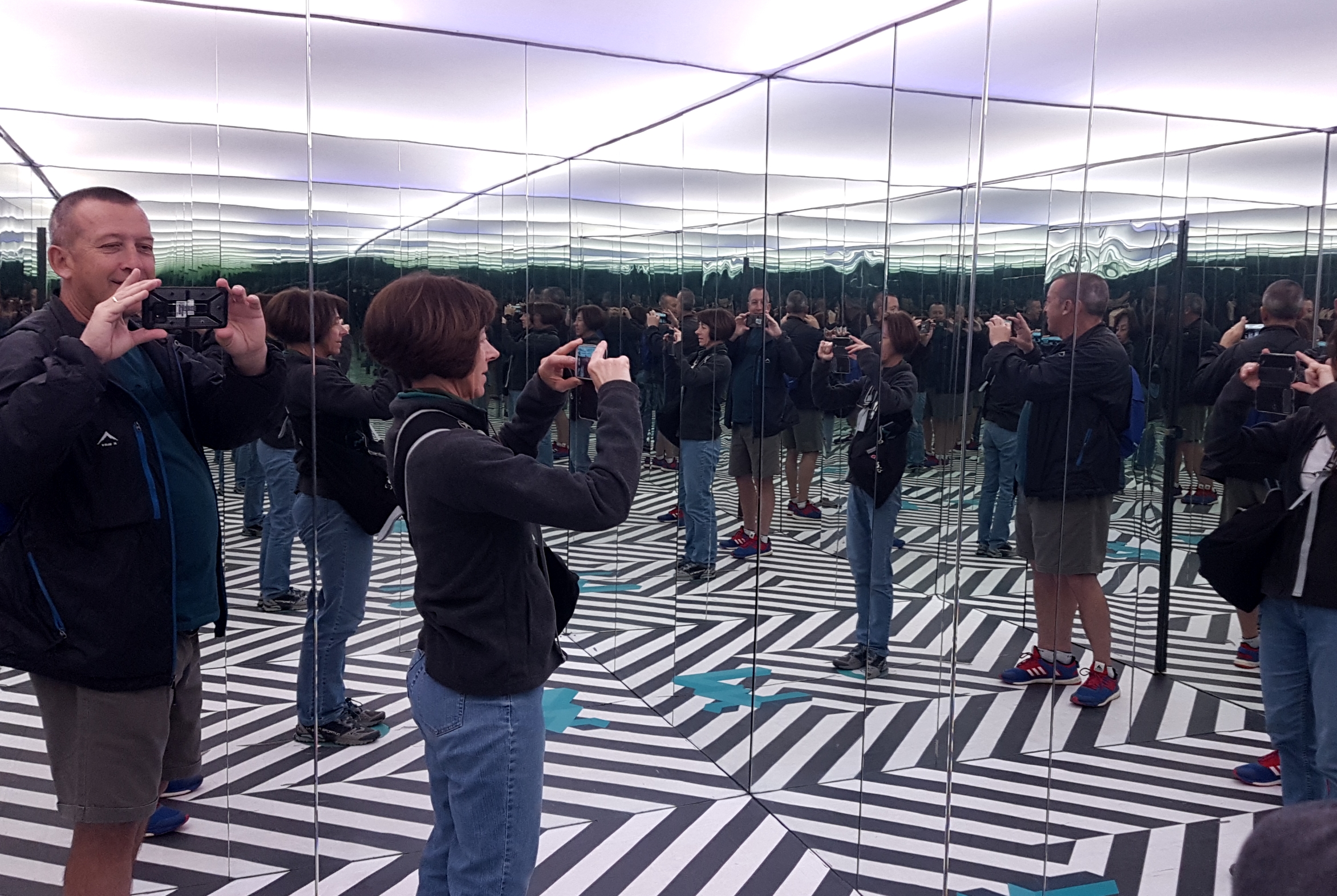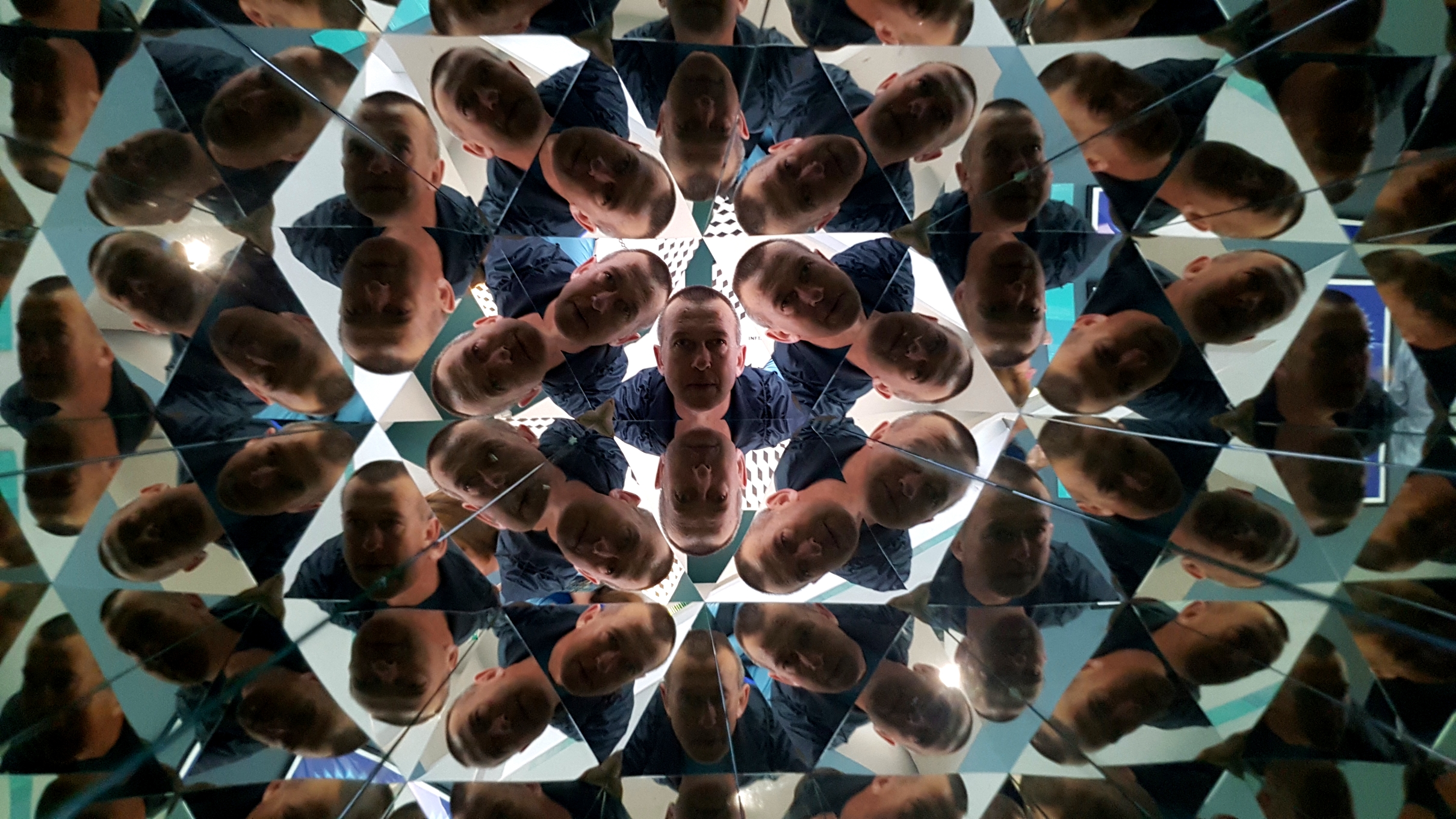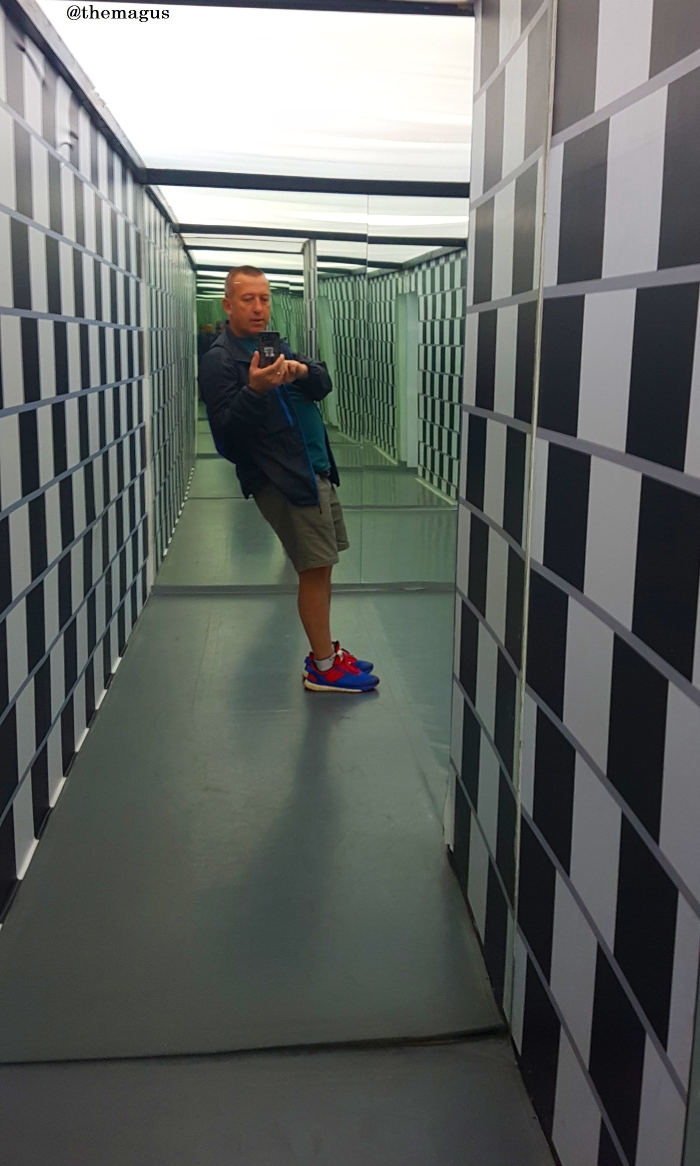 When looking at this from front on one only sees a blank dark piece of glass. This is really eerie but striking.