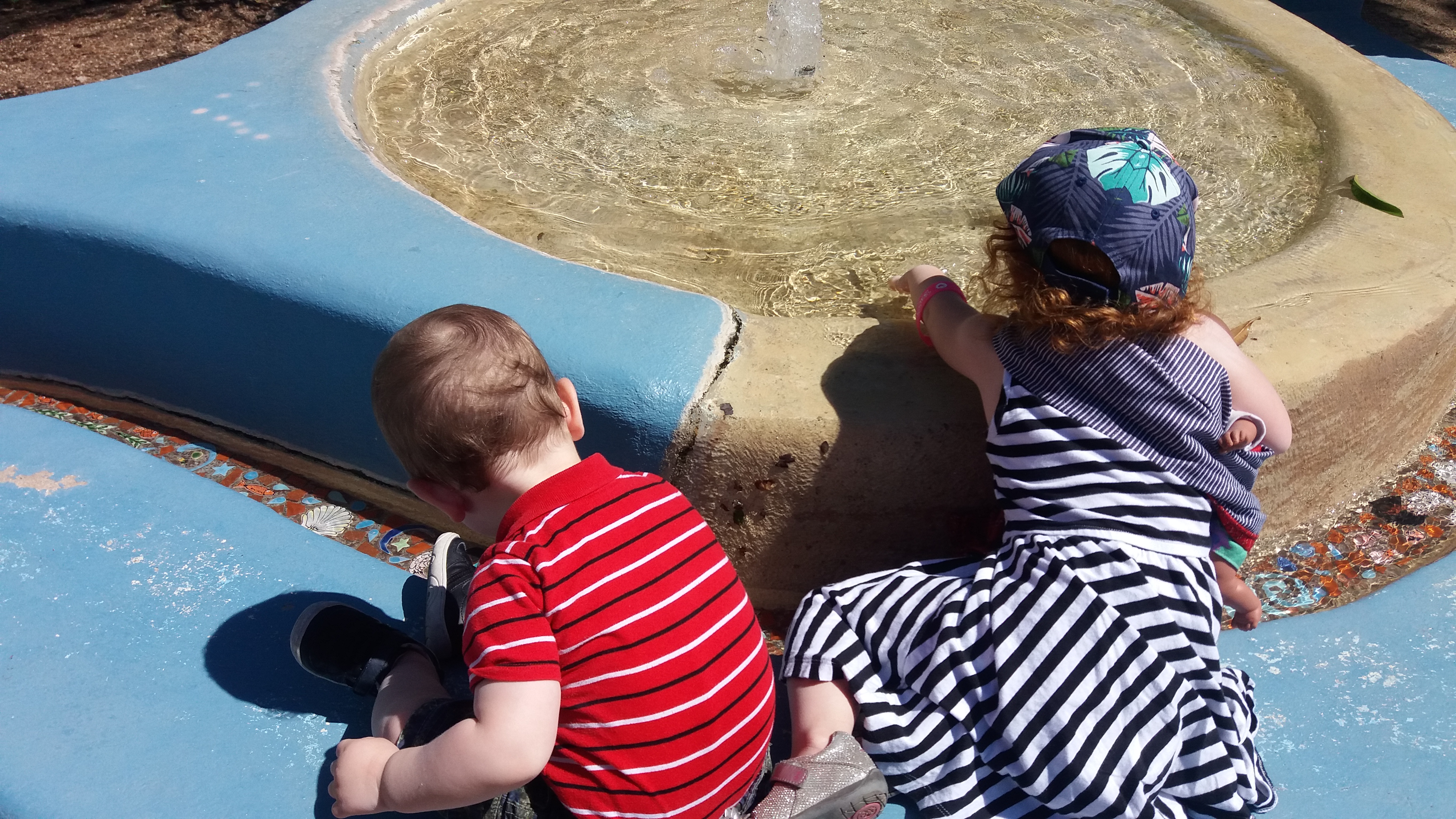 Next we came to the Children's Garden. There was a little flowing river and the children both enjoyed placing their boats at the source and watching them flow down to the mouth of the river.
