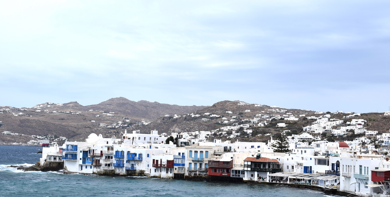 A must when visiting Mykonos is to see The Mykonos windmills - the iconic feature of Greek island and Little Venice, where the waves literally splash the water in the bars, which are located directly by the sea.