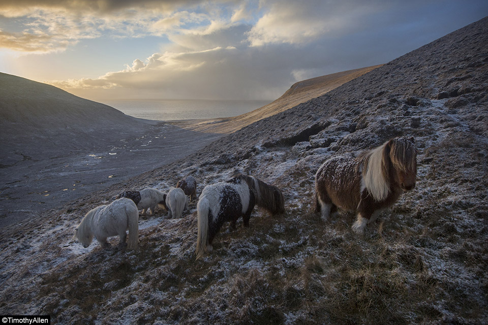 Only 56 people, how remote. Shetland ponies definitely look like they are well adapted for the climate.
