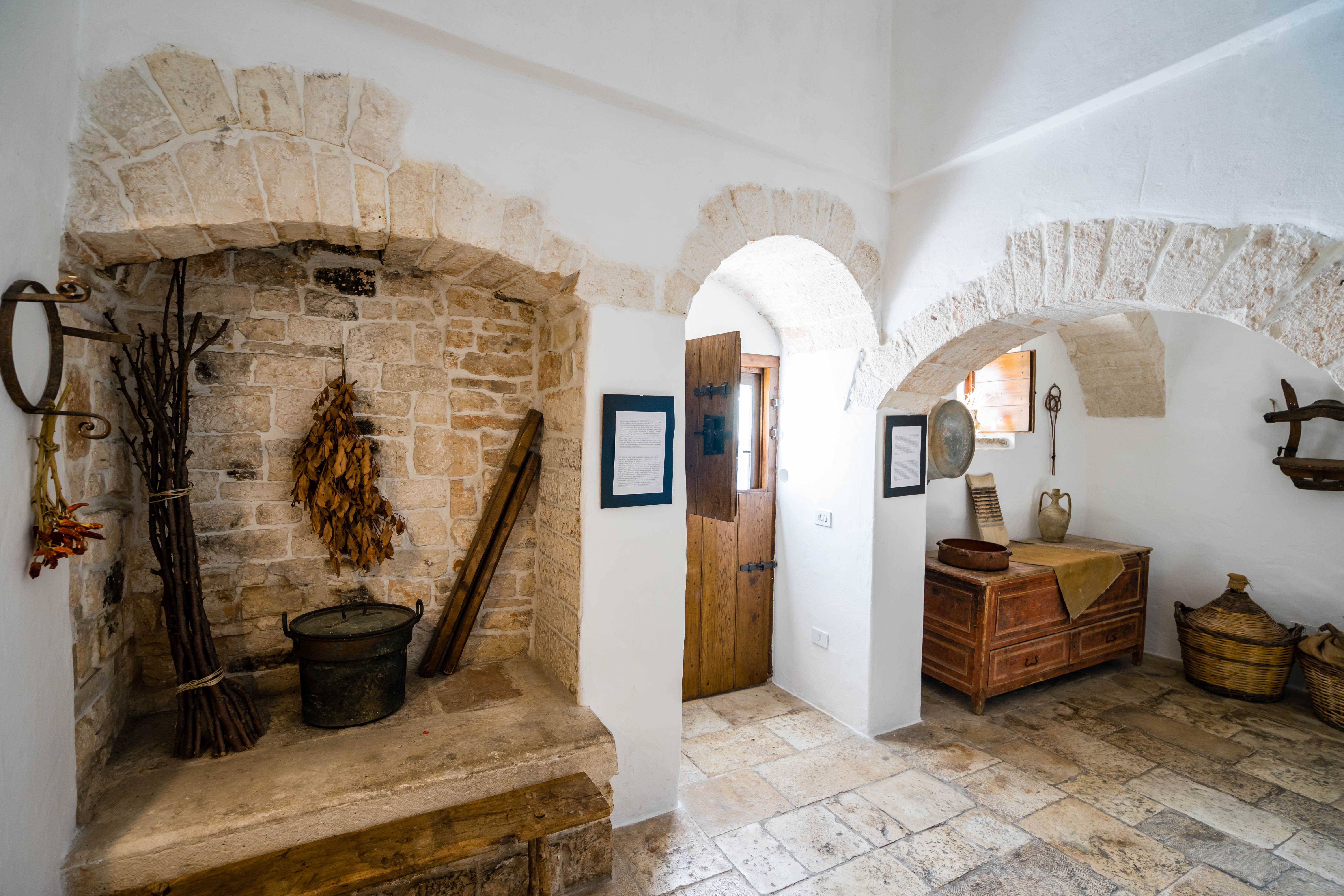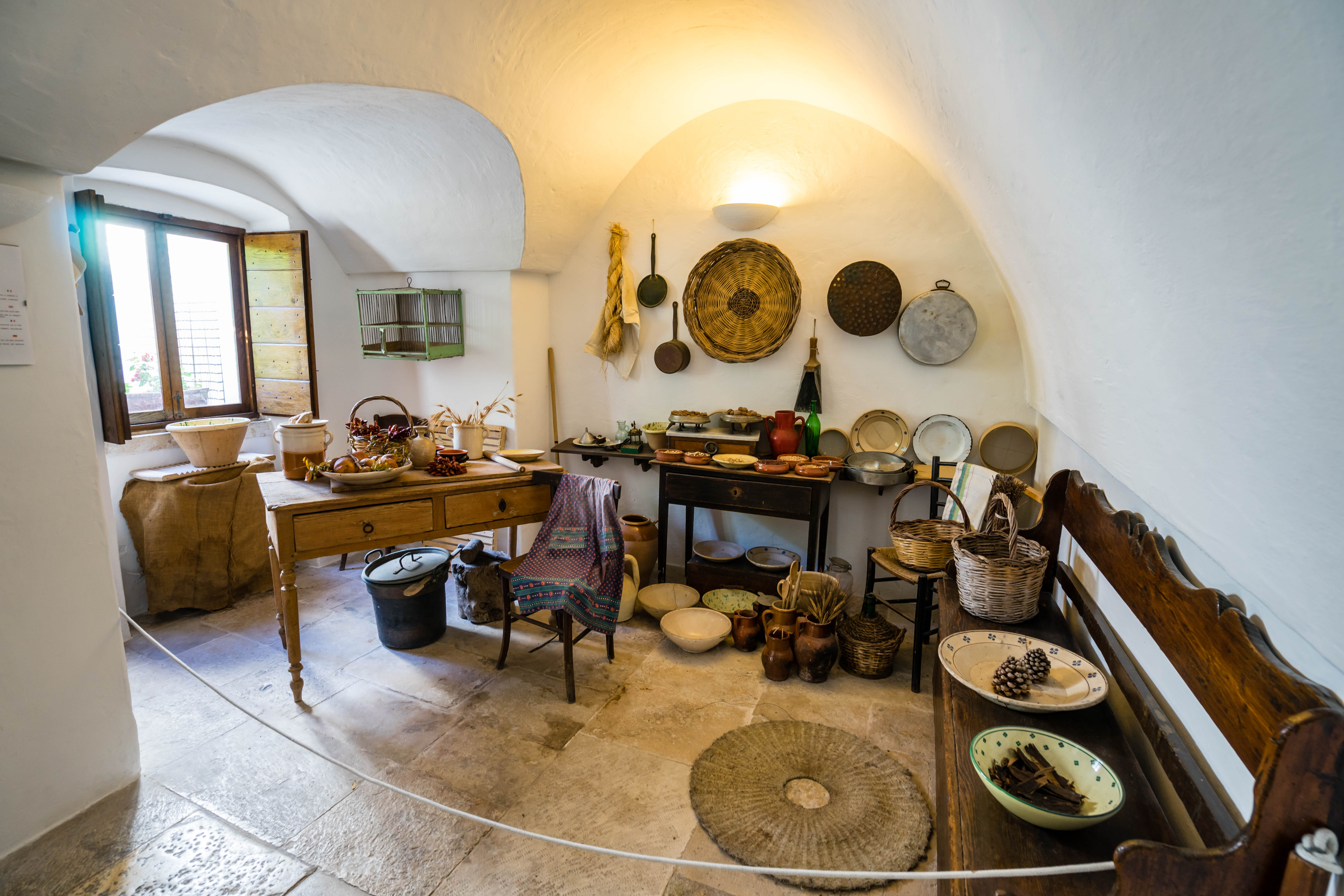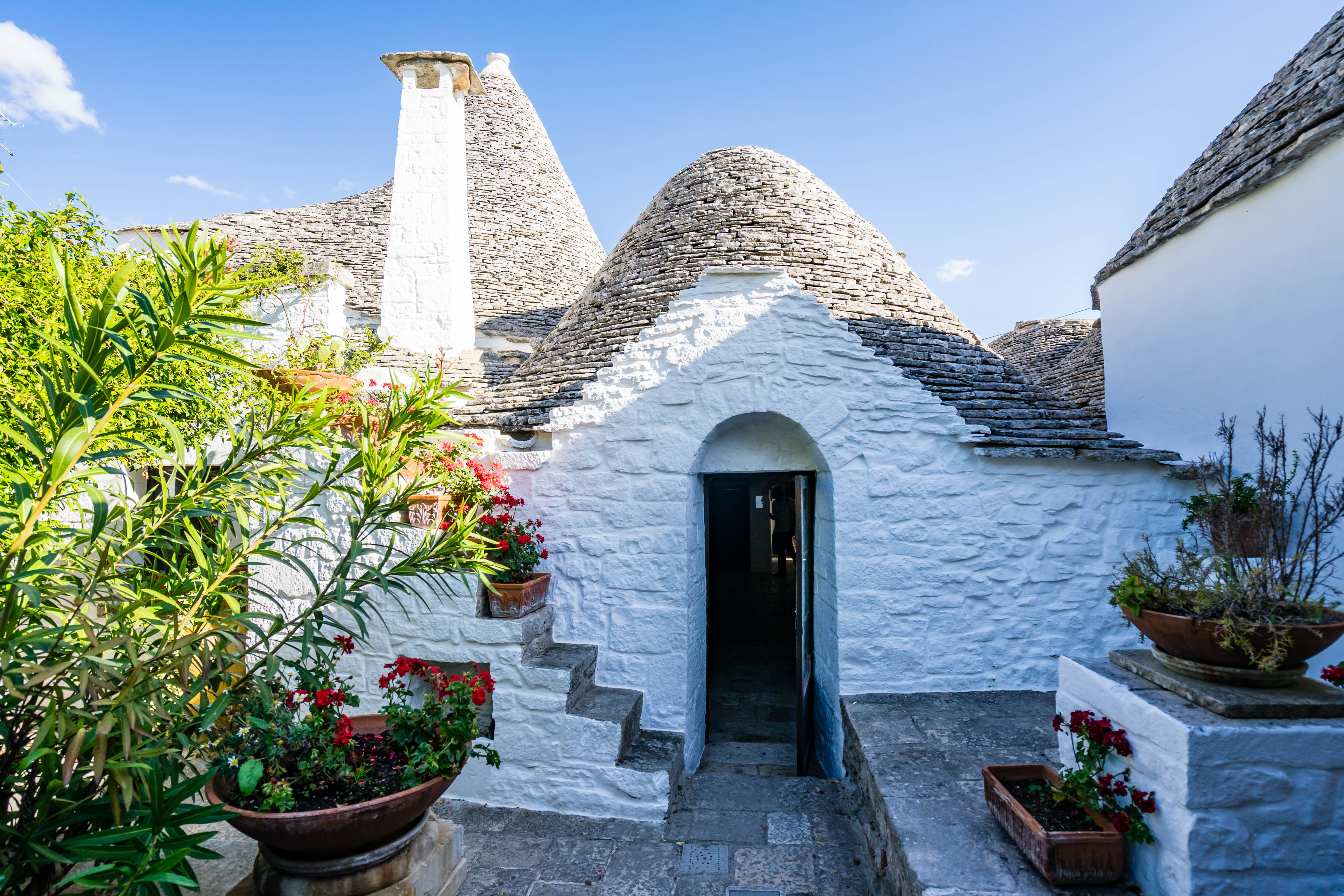 The Trullo Sovrano is located north of the historic center and is the only one to have a raised floor, reachable from inside through a masonry staircase, among the first to be built with mortar. The majestic conical dome, about 14 meters high, stands imposingly in the center of a group consisting of twelve cones.