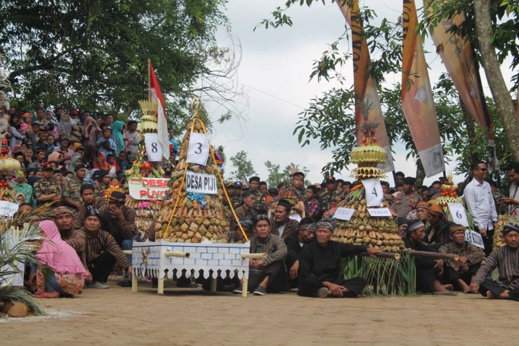 Dozens of mountains containing ketupat paraded by residents from the Tomb of Sunan Muria, Colo Village, Dawe District, Kudus. The convoy of rhinoceros in the Sewu Kupat Parade ended at Taman Ria Colo, Kudus.